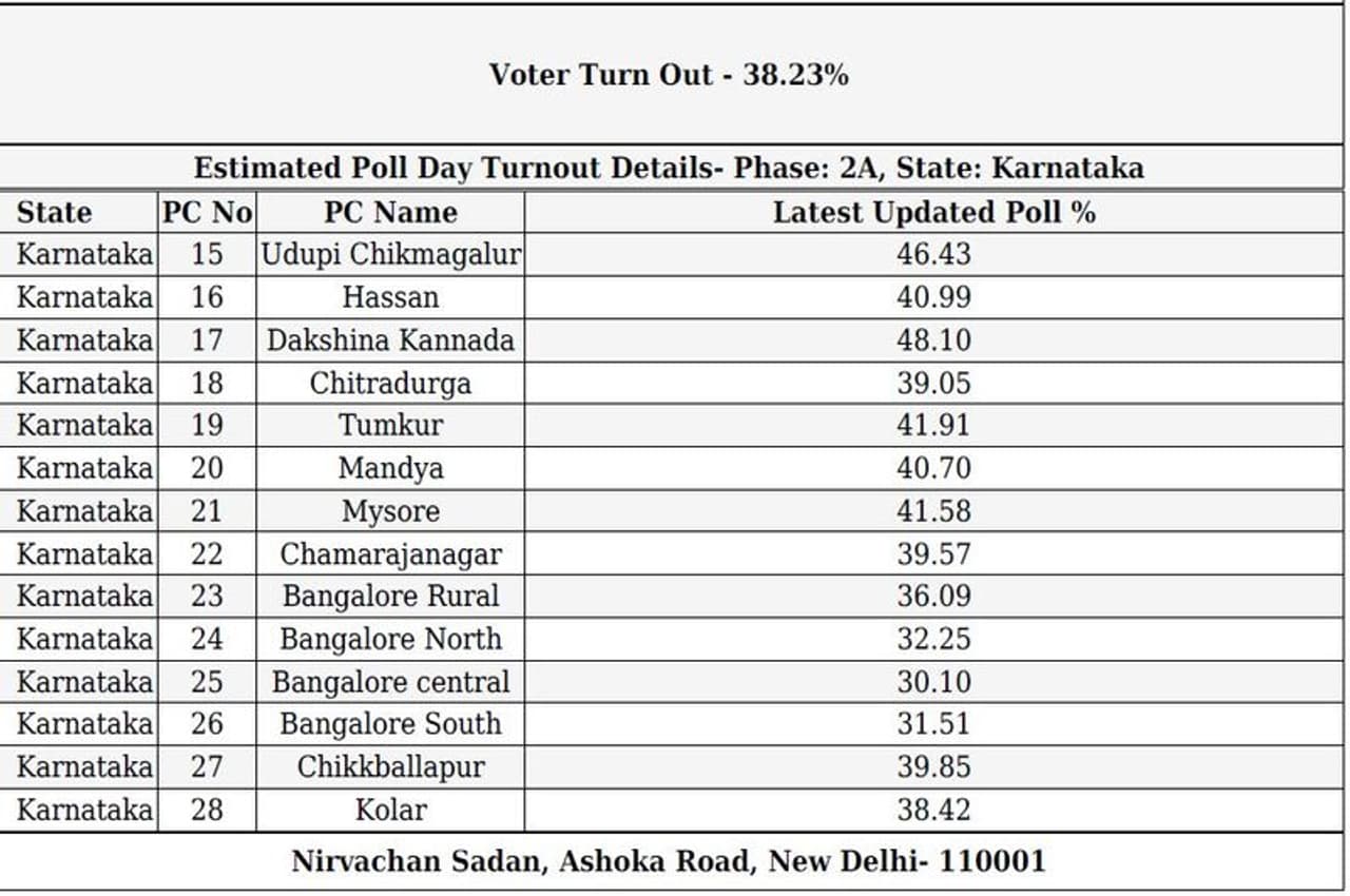 ಮಂಡ್ಯದಲ್ಲಿ ಹೈಯೆಸ್ಟ್, ಬೆಂಗಳೂರು ಕೇಂದ್ರದಲ್ಲಿ ಕಡಿಮೆ ಮತದಾನ