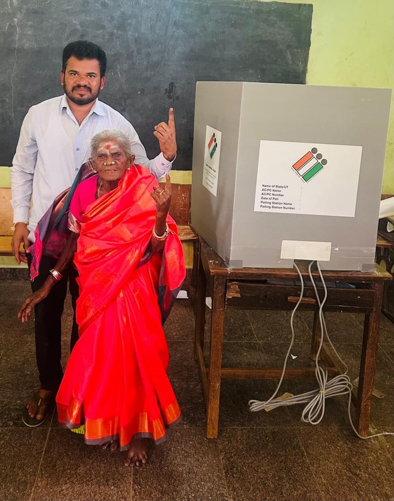 113 ವರ್ಷದ ಸಾಲಮರದ ತಿಮ್ಮಕ್ಕನಿಂದ ಮತದಾನ
