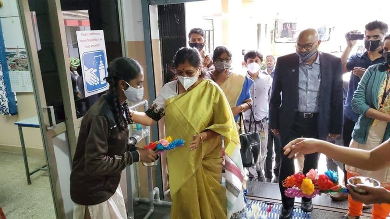ಕೊರೋನಾ ಭೀತಿಯ ಮಧ್ಯೆ ಶಾಲಾ-ಕಾಲೇಜುಗಳು ಆರಂಭವಾಗಿವೆ. ಈ ಹಿನ್ನೆಯಲ್ಲಿ ಶಿಕ್ಷಣ ಸಚಿವ ಸುರೇಶ್ ಕುಮಾರ್ ಅವರು ಶಾಲೆ-ಕಾಲೇಜುಗಳಿಗೆ ಭೇಟಿ ಪರಿಶೀಲನೆ ನಡೆಸಿದ್ದಾರೆ. ಇತ್ತ ಮಹಿಳಾ ಮತ್ತು ಮಕ್ಕಳ ಅಭಿವೃದ್ಧಿ ಇಲಾಖೆ ಸಚಿವೆ ಶಶಿಕಲಾ ಜೊಲ್ಲೆ ಅವರು ಸಹ ಕಾರ್ಯಪ್ರವೃತರಾಗಿದ್ದು, ಮಕ್ಕಳ ಆರೋಗ್ಯ ಕಾಳಜಿವಹಿಸಿದರು.