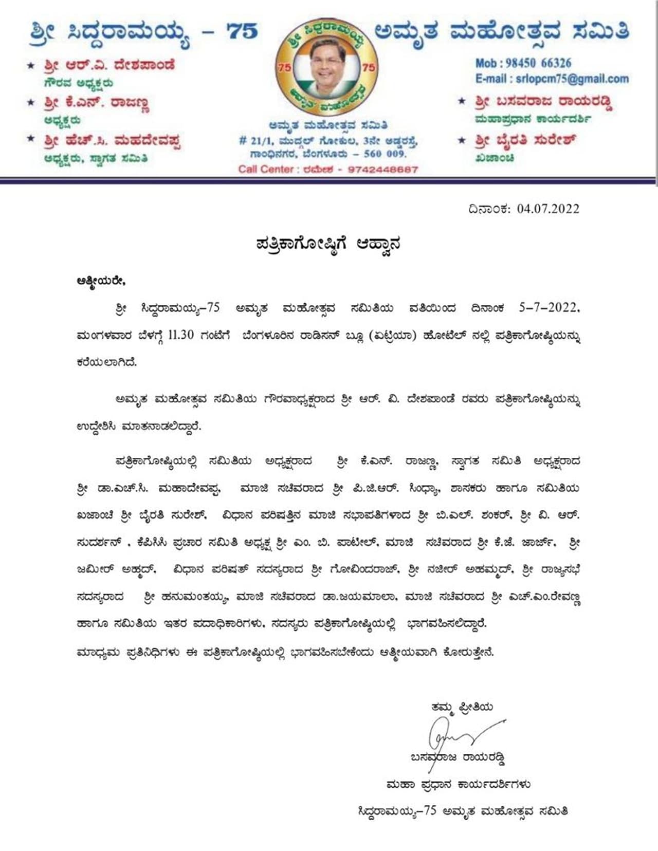 ಇದರ ಅರ್ಥ ಬಹಳ ಸ್ಪಷ್ಟವಾಗಿದೆ ಎನ್ನುತ್ತಾರೆ ಸಮಿತಿ ಸದಸ್ಯರು. ಈ ಮೇಲ್ ಕ್ರಿಯೆಟ್ ಮಾಡಿದ್ದು ಬಸವರಾಜ ರಾಯರೆಡ್ಡಿ. ಇದಕ್ಕೆ ಅಧಿಕೃತ ಮುದ್ರೆ ಹಾಕಿದ್ದು ಸಮಿತಿ ಸದಸ್ಯರು. Sr ಅಂದ್ರೆ ಸಿದ್ದರಾಮಯ್ಯ, lop ಅಂದ್ರೆ ಲೀಡರ್ ಆಫ್ ಅಪೋಸಿಷನ್ (ವಿಪಕ್ಷ ನಾಯಕ), CM ಅಂದ್ರೆ ಚೀಫ್ ಮಿನಿಸ್ಟರ್ (ಮುಖ್ಯಮಂತ್ರಿ). ಸಿದ್ದರಾಮಯ್ಯ ವಿಪಕ್ಷನಾಯಕ ಮುಖ್ಯಮಂತ್ರಿ75 ಎಂದು ಆಗುತ್ತದೆ ಅಂತಿದ್ದಾರೆ ಸಿದ್ದರಾಮಯ್ಯ ಆಪ್ತರು.