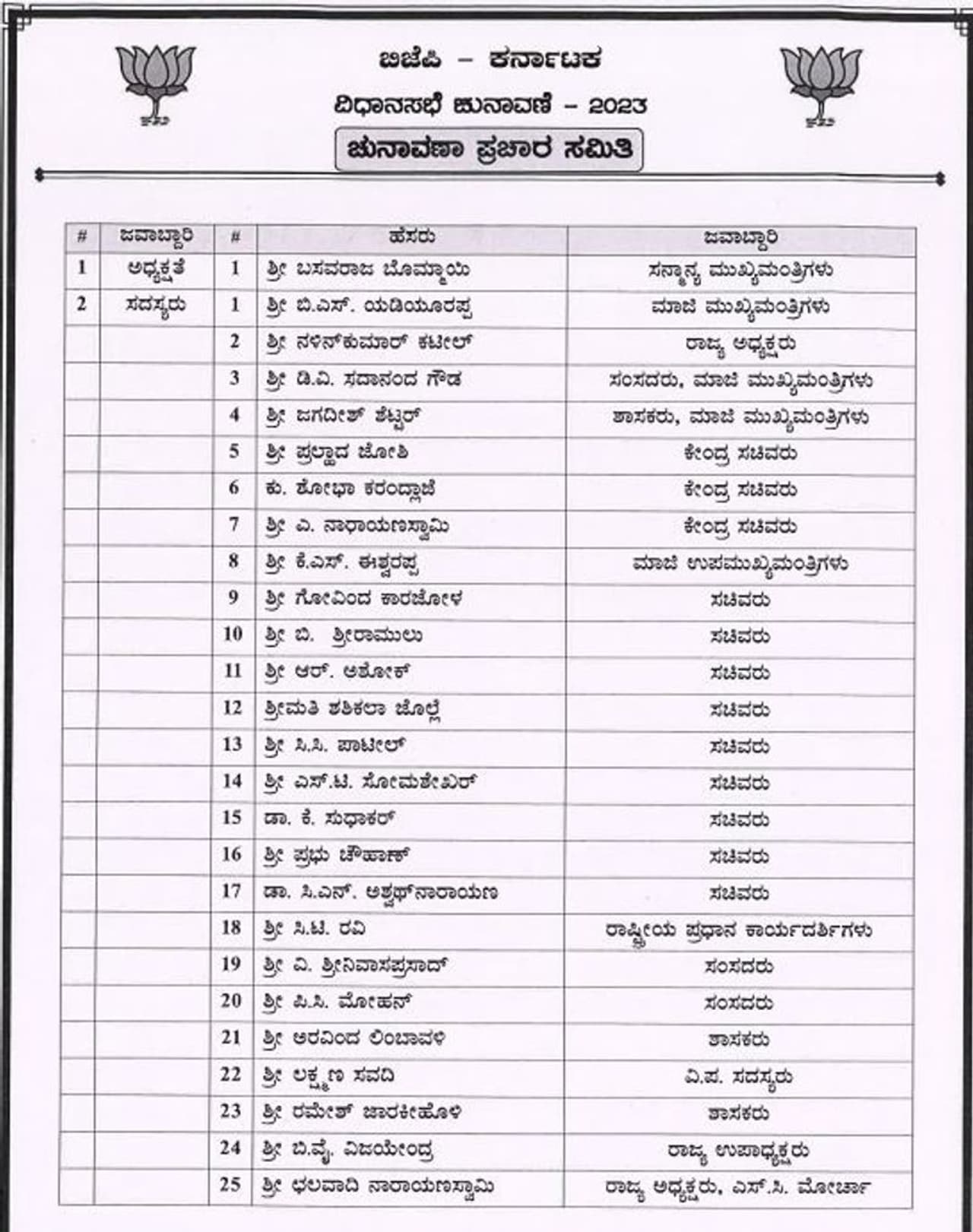 ಬಿಜೆಪಿ ಚುನಾವಣಾ ಪ್ರಚಾರ ಸಮಿತಿ