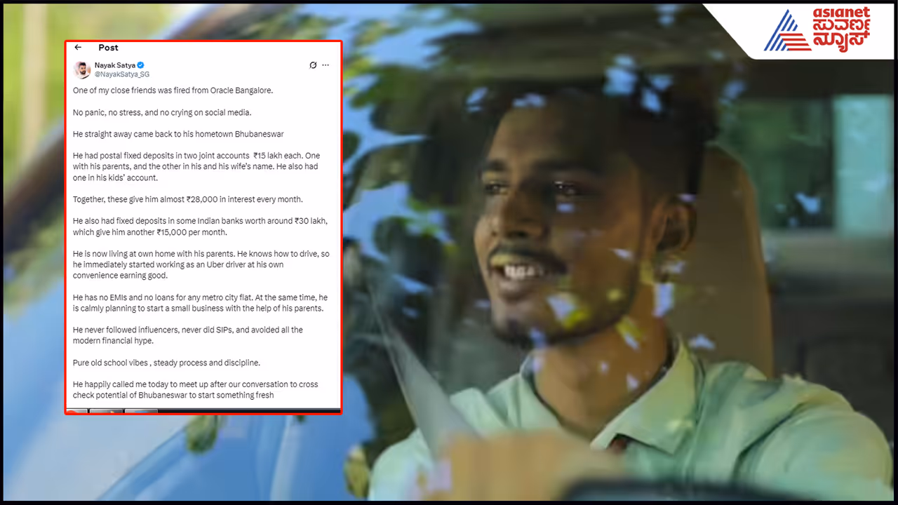 ಒರಾಕಲ್ ಕಂಪೆನಿಯಿಂದ ವಜಾಗೊಂಡ ಬೆಂಗಳೂರಿನ ಟೆಕ್ಕಿಯೊಬ್ಬರು 14 ವರ್ಷಗಳ ಸೇವೆ ನಂತರ ಕ್ಯಾಬ್ ಡ್ರೈವರ್ ಆಗಿ ಹೊಸ ಜೀವನ ಆರಂಭಿಸಿದ್ದಾರೆ. ಪೂರ್ವ ಉಳಿತಾಯ ಮತ್ತು ಸರಿಯಾದ ಹಣಕಾಸು ಯೋಜನೆಯಿಂದಾಗಿ ಅವರು ಈಗ ಒತ್ತಡವಿಲ್ಲದೆ ಸಂತೋಷದ ಜೀವನ ನಡೆಸುತ್ತಿದ್ದು, ಅವರ ಕಥೆ ಅನೇಕರಿಗೆ ಸ್ಫೂರ್ತಿಯಾಗಿದೆ.