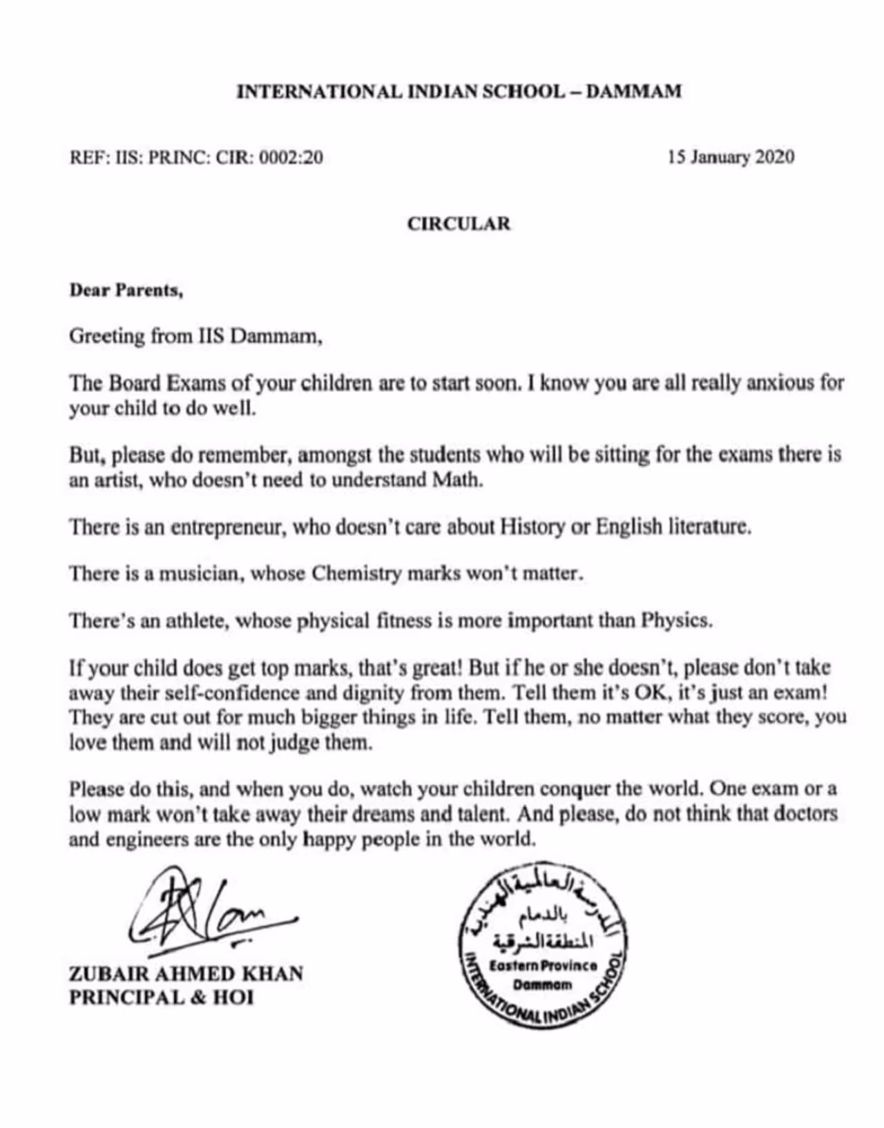 ದಯವಿಟ್ಟು ಈ ಮಾತನ್ನು ಪಾಲಿಸಿ. ಆಮೇಲೆ ನಿಮ್ಮ ಮಕ್ಕಳು ಹೇಗೆ ಜಗತ್ತನ್ನು ಗೆಲ್ಲುತ್ತಾರೆ ಅಂತ ನೋಡಿ. ಕಡಿಮೆ ಅಂಕಗಳು ಅವರ ಕನಸು, ಪ್ರತಿಭೆಗಳನ್ನು ಕಮರಿಸಲಾರದು. ಇನ್ನೊಂದು ಮಾತು, ದಯವಿಟ್ಟು ತಿಳಿದುಕೊಳ್ಳಿ - ಈ ಜಗತ್ತಿನಲ್ಲಿ ಸಂತೋಷವಾಗಿರುವವರು ಡಾಕ್ಟರ್ಸ್ ಅಥವಾ ಇಂಜಿನಿಯರ್ಸ್ ಮಾತ್ರ ಅಲ್ಲ!