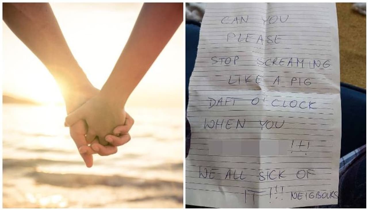 ನೆರೆಮನೆಯವರೆಲ್ಲಾ ನೋಡುವಷ್ಟು ನೋಡಿದ್ದಾರೆ. ನಂತರ ಒಂದು ದಿನ ದೊಡ್ಡದಾಗಿ ಚೀಟಿ ಬರೆದು ತಂದು ಆಕೆಯ ಮನೆಯ ಬಾಗಿಲಿಗೆ ಅಂಟಿಸಿದ್ದಾರೆ. ಅದರಲ್ಲಿ ''ಎಲಾ ಹೆಣ್ಣೇ, ಸೆಕ್ಸ್ ವೇಳೆ ಆ ಪರಿ ಹಂದಿಯ ಥರಾ ಕಿರುಚಬೇಡ, ನೀನೂ ತೋಮದರೆ ತಗೊಳ್ಳೋದಲ್ಲದೆ ನಮಗೂ ಉಪಟಳ ಕೊಡ್ತಿದೀಯಾ. ನಿನ್ನಿಂದಾಗಿ ನಮಗೆ ಸರಿಯಾಗಿ ನಿದ್ದೆ ಮಾಡೋಕೇ ಆಗ್ತಿಲ್ಲ. ಕೆಲವರು ತಿಂಗಳುಗಟ್ಟಲೆಯಿಂದ ನಿದ್ದೆ ಮಾಡದೆ ಹುಚ್ಚರ ಥರಾ ಆಗೋಗಿದಾರೆ. ಸುಮ್ಮನೇ ಸೆಕ್ಸ್ ಮಾಡೋಕೆ ಸಾಧ್ಯವಾದರೆ ಮಾಡು. ಇಲ್ಲವಾದರೆ ನಿನ್ನ ಫ್ರೆಂಡ್ ಜೊತೆ ಬೇರೆಲ್ಲಾದರೂ ಹಾಳಾಗಿ ಹೋಗು'' ಎಂದು ದಬಾಯಿಸಿದ್ದಾರೆ.
