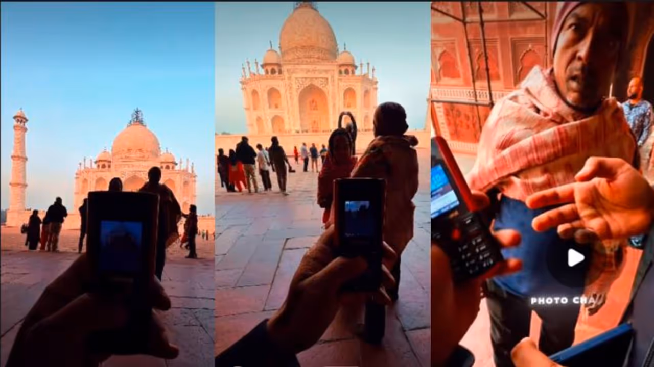 ಹೌದು ವಿಶ್ವವಿಖ್ಯಾತ ಪ್ರೇಮಸೌಧ ಎಂದೇ ಕರೆಯಯಲ್ಪಡುವ ತಾಜ್ ಮಹಲ್ಗೆ ಪ್ರತಿವರ್ಷವೂ ಲಕ್ಷಾಂತರ ಜನ ಪ್ರವಾಸಿಗರು ದೇಶ ಮಾತ್ರವಲ್ಲದೇ ವಿದೇಶಗಳಿಂದಲೂ ಭೇಟಿ ನೀಡುತ್ತಾರೆ. ಅದೇ ರೀತಿ ಇಲ್ಲೊಂದು ಕಡೆ ವೃದ್ಧ ಜೋಡಿಯೊಂದು ಅಲ್ಲಿಗೆ ಭೇಟಿ ನೀಡಿದೆ. ಭೇಟಿಯ ನಂತರ ಎಲ್ಲರಂತೆ ಅವರಿಗೂ ಪ್ರೇಮ ಸೌಧದ ಮುಂದೆ ತಮ್ಮದೊಂದು ನೆನಪಿನ ಮುದ್ರೆ ಇರಬೇಕು ಎಂದೆನಿಸಿದೆ. ಅದರಂತೆ ಅವರು ತಮ್ಮ ಬೇಸಿಕ್ ಸೆಟ್ ನೀಡಿ ಫೋಟೋ ತೆಗೆಯುವಂತೆ ಅಲ್ಲಿದ್ದವರೊಬ್ಬರ ಬಳಿ ಕೇಳಿಕೊಂಡಿದೆ. ಆ ಬೇಸಿಕ್ ಸೆಟ್ನಲ್ಲಿ ಕ್ಯಾಮರಾ ಇದೆ. ಆದರೆ ಸ್ಮಾರ್ಟ್ಫೋನ್ನಲ್ಲಿ ಬರುವಷ್ಟು ಸೊಗಸಾಗಿ ಅದರಲ್ಲಿ ಫೋಟೋಗಳು ಬರುವುದಿಲ್ಲ. ಆದರೂ ನೆನಪಿಗೊಂದು ಫೋಟೋ ಇರಲಿ ಚೆನ್ನಾಗಿರೋದು ಮುಖ್ಯ ಅಲ್ಲ ನೆನಪು ಮುಖ್ಯ ಎಂದು ದಂಪತಿ ತಮ್ಮ ಸಣ್ಣ ಫೋನ್ನಲ್ಲಿ ಫೋಟೋ ತೆಗೆಸಿಕೊಂಡಿದ್ದಾರೆ.