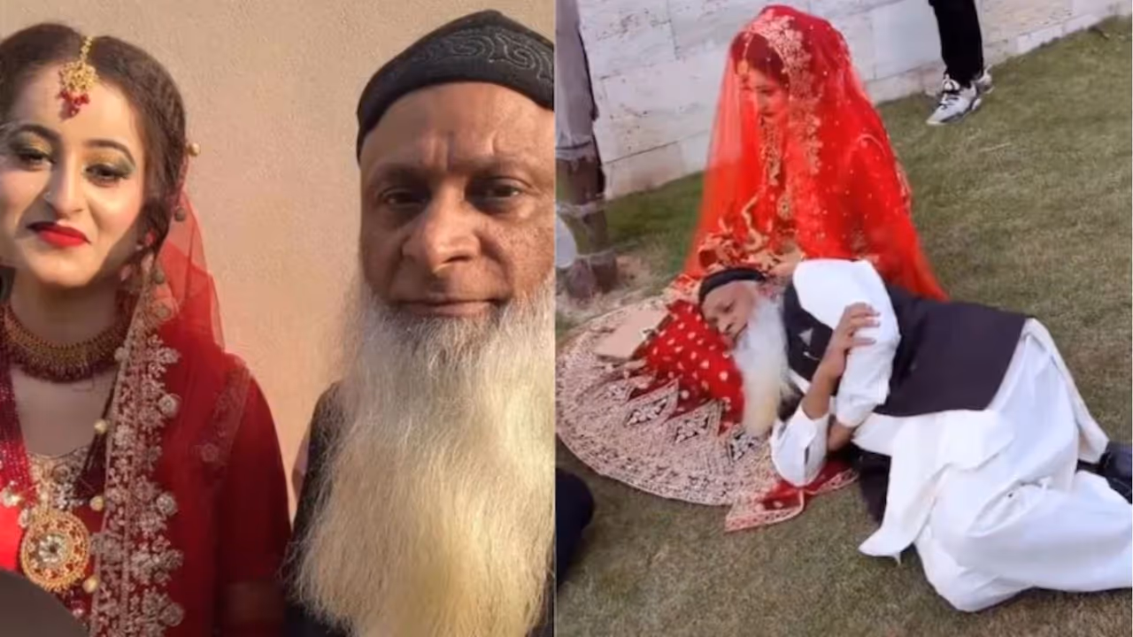 Pakistani viral bridal photoshoot: ಪಾಕಿಸ್ತಾನದ ಈ ಜೋಡಿಯ ಫೋಟೋಶೂಟ್ ಈಗ ಇಡೀ ವಿಶ್ವದಲ್ಲೇ ದೊಡ್ಡ ಚರ್ಚೆಗೆ ಗ್ರಾಸವಾಗಿದೆ. 70 ವರ್ಷದ ಹಕೀಂ ಬಾಬರ್ ಮತ್ತು 22ರ ಹರೆಯದ ಯುವತಿ ತಮ್ಮ 48 ವರ್ಷಗಳ ವಯಸ್ಸಿನ ಅಂತರವನ್ನು ಮರೆತು, ಪರಸ್ಪರ ಪ್ರೀತಿಯಿಂದ ಕ್ಯಾಮೆರಾ ಮುಂದೆ ಪೋಸ್ ನೀಡಿದ್ದಾರೆ.