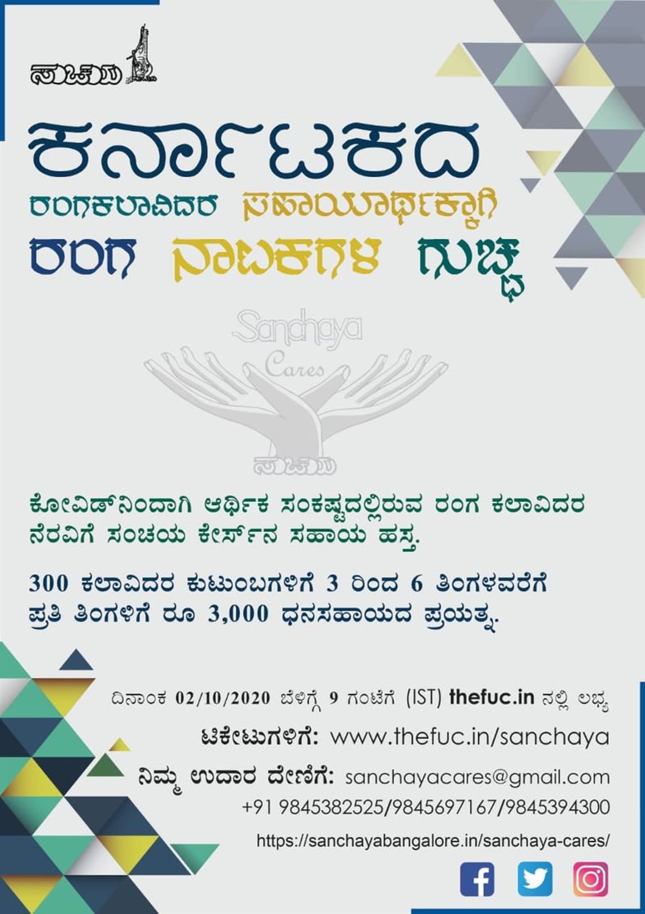 32 ವರ್ಷದ ಸಂಚಯ ನಾಟಕ ತಂಡ ಕಷ್ಟದಲ್ಲಿರುವ ಕಲಾವಿದರ ನೆರವಿಗೆ ಮುಂದಾಗಿದೆ. ಕೊರೋನಾದಿಂದ ಬಾಧಿತರಾದ ಹಿರಿಯ ಪುರುಷ ಮತ್ತು ಮಹಿಳಾ ಕಲಾವಿದರಿಗೆ ಯುವಕರ ತಂಡ ನೆರವಾಗಲಿದೆ.