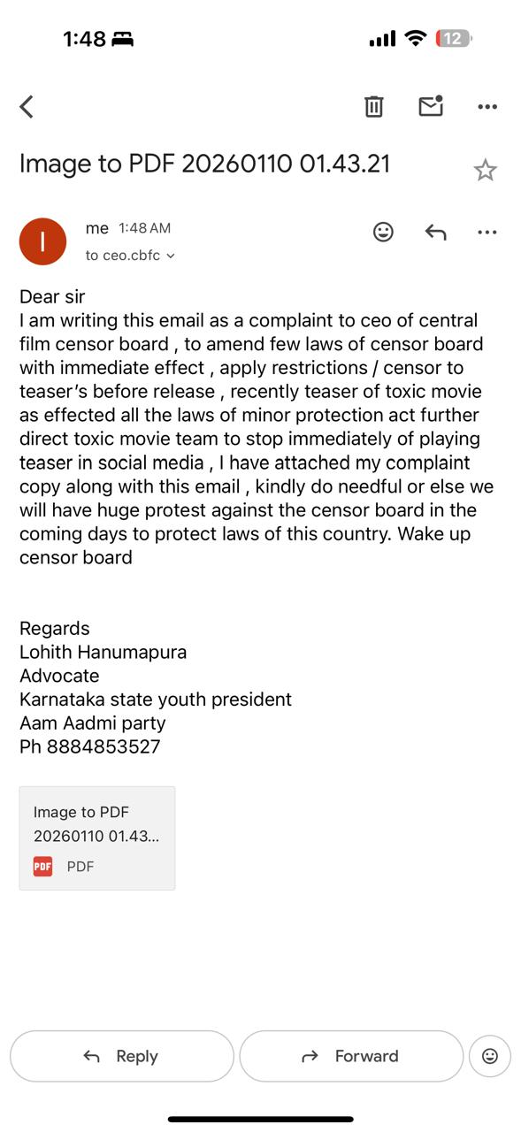 ಈ ಬಗ್ಗೆ ಮಾತನಾಡಿದ ಲೋಹಿತ್ "ಸೆನ್ಸಾರ್ ಮಂಡಳಿವು A, U ಸೆರ್ಟಿಫಿಕೇಟ್ ಕೊಡ್ತಾರೆ. ಥಿಯೇಟರ್ನಲ್ಲಿ ಆಧಾರ್ ಕಾರ್ಡ್ ತೋರಿಸಿ ಸಿನಿಮಾ ನೋಡಲು ಹೋಗಬೇಕು. ನಾನು ಯಶ್ ಅಥವಾ ಚಿತ್ರರಂಗದ ವಿರುದ್ಧ ಇಲ್ಲ. ಟಾಕ್ಸಿಕ್ ಸಿನಿಮಾವನ್ನು ಕುಟುಂಬದ ಸಮೇತ ನೋಡಲು ಆಗೋದಿಲ್ಲ ಎಂದು ಹೇಳಿದ್ದಾರೆ.