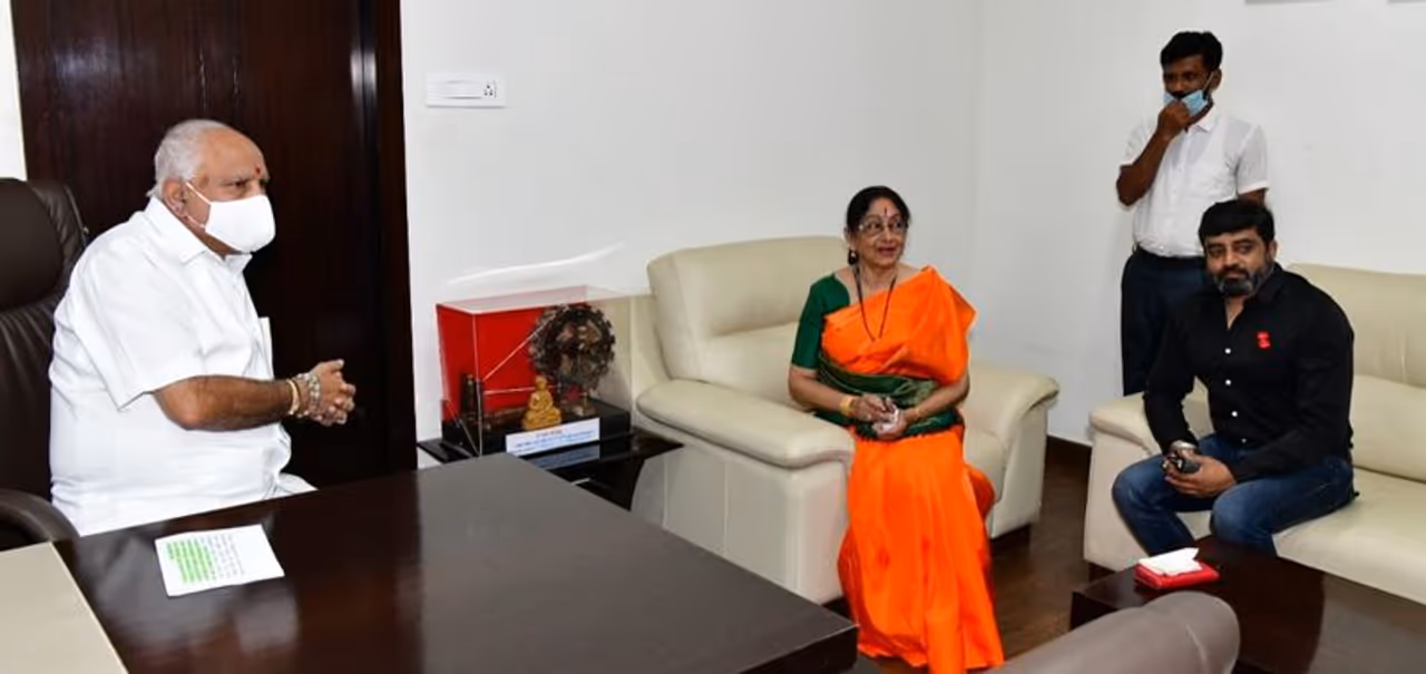 ವಿಷ್ಣುವರ್ಧನ್ ಸ್ಮಾರಕ ನಿರ್ಮಾಣದ ಸಂಕುಸ್ಥಾಪನೆ ಮಾಡುವ ವಿಚಾರದ ಬಗ್ಗೆ ನಟಿ ಭಾರತಿ ವಿಷ್ಣುವರ್ಧನ್ ಹಾಗೂ ಅಳಿಯ ನಟ ಅನಿರುದ್ಧ್ ಇಂದು ಗೃಹ ಕಚೇರಿ ಕೃಷ್ಣಾದಲ್ಲಿ ಸಿಎಂ ಯಡಿಯೂರಪ್ಪ ಅವರನ್ನು ಭೇಟಿ ಮಾಡಿದ್ದಾರೆ.