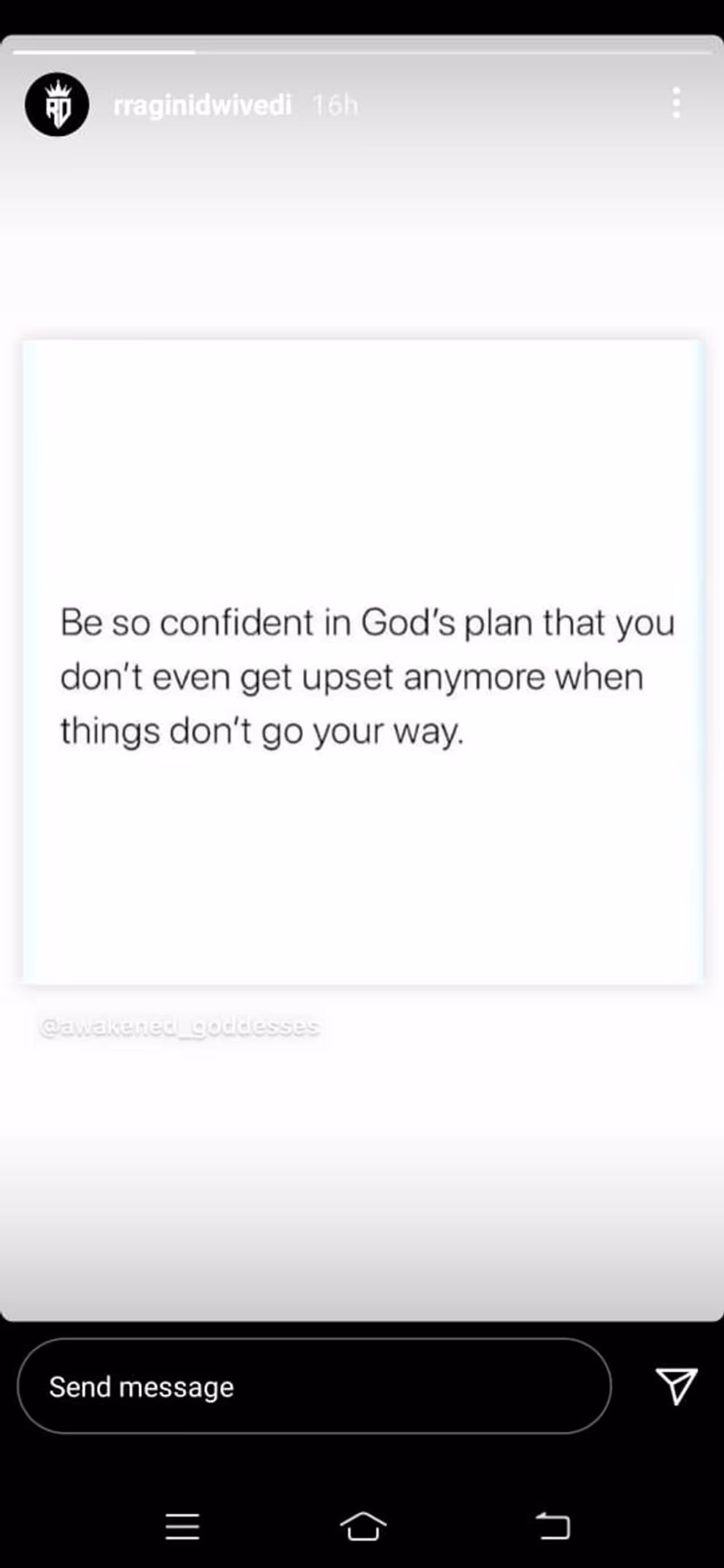 ನೀನು ಅಂದುಕೊಂಡಂತೆ ನಡೆಯದಿದ್ದರೂ ಬೇಸರ ಮಾಡಿಕೊಳ್ಳಬಾರದು. ದೇವರು ನಿಮಗಾಗಿ ಮಾಡಿರುವ ಪ್ಲಾನ್ಗಳಲ್ಲಿ ಅಷ್ಟು ವಿಶ್ವಾಸ ಇರಬೇಕು ಎಂದಿದ್ದಾರೆ ನಟಿ. ಹೀಗೆಂದು ರಾಗಿಣಿ ಸಾಮಾಜಿಕ ಜಾಲತಾಣದಲ್ಲಿ ಸ್ಟೇಟಸ್ ಹಾಕಿಕೊಂಡಿದ್ದಾರೆ. ಸದ್ಯ ಮನೆಯಲ್ಲಿಯೇ ಇರುವ ರಾಗಿಣಿ ಮಾಧ್ಯಮಗಳಿಗೆ ಯಾವುದೇ ಪ್ರತಿಕ್ರಿಯೆ ನೀಡಲು ನಿರಾಕರಿಸಿದ್ದಾರೆ.