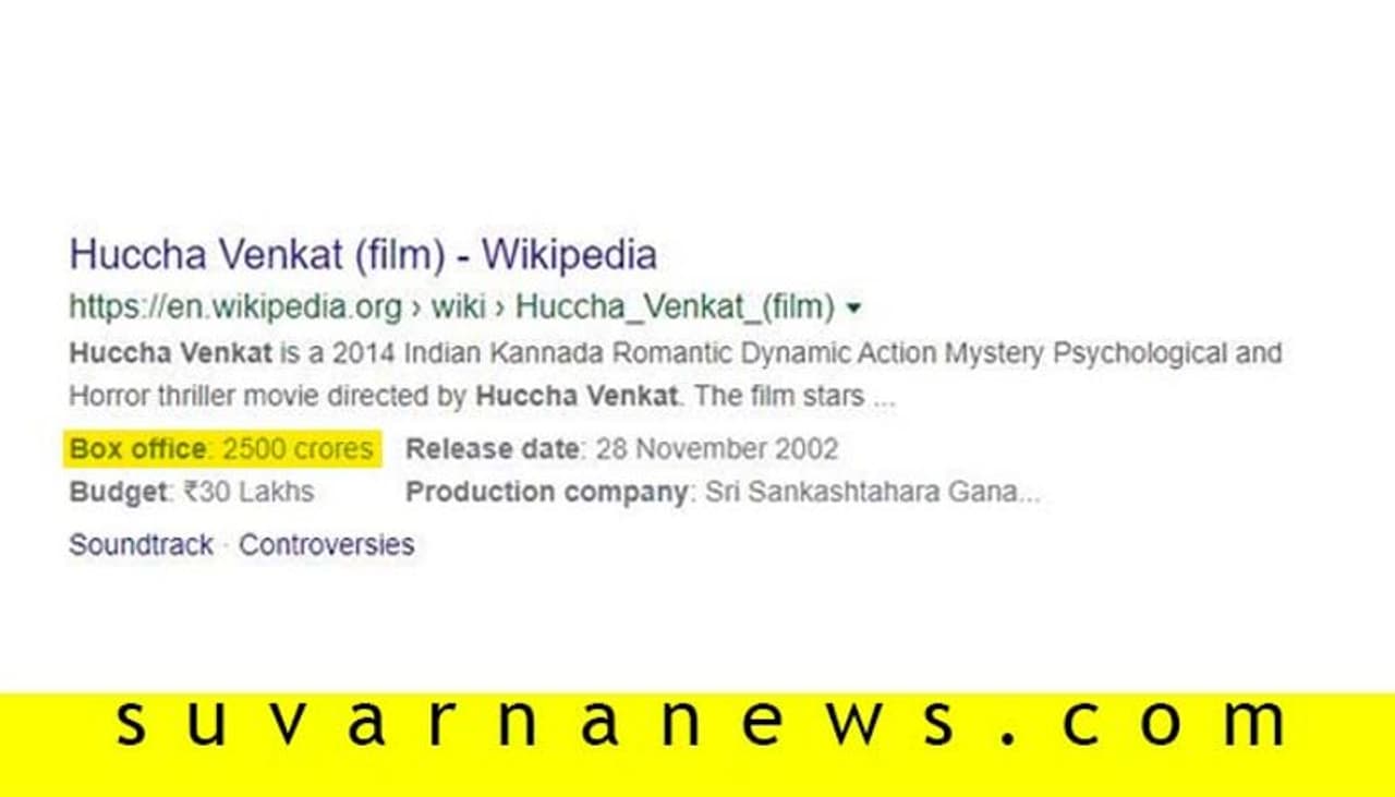 2014 ರಲ್ಲಿ ತೆರೆ ಕಂಡ 'ಹುಚ್ಚ ವೆಂಕಟ್' ಸಿನಿಮಾ ಕೇವಲ 30 ಲಕ್ಷ ಬಜೆಟ್ನಲ್ಲಿ ತೆರೆ ಕಂಡಿತ್ತು. ಮತ್ತು ರಿಲೀಸ್ ಆದ ಕೆಲವೇ ದಿನಗಳಲ್ಲಿ 2500 ಕೋಟಿ ಕಲೆಕ್ಷನ್ ಮಾಡಿತ್ತು. ಇದನ್ನು ನಾವು ಹೇಳುತ್ತಿಲ್ಲ ಗೂಗಲ್ ವಿಕಿಪೀಡಿಯಾ ಮಾಹಿತಿ ನೀಡುತ್ತಿದೆ. ಈ ಚಿತ್ರದಲ್ಲಿ ವೆಂಕಟ್ಗೆ ಜೋಡಿಯಾಗಿ ನಟಿ ಕವಿತಾ ಬಿಸ್ತ್ ಮಿಂಚಿದ್ದಾರೆ.