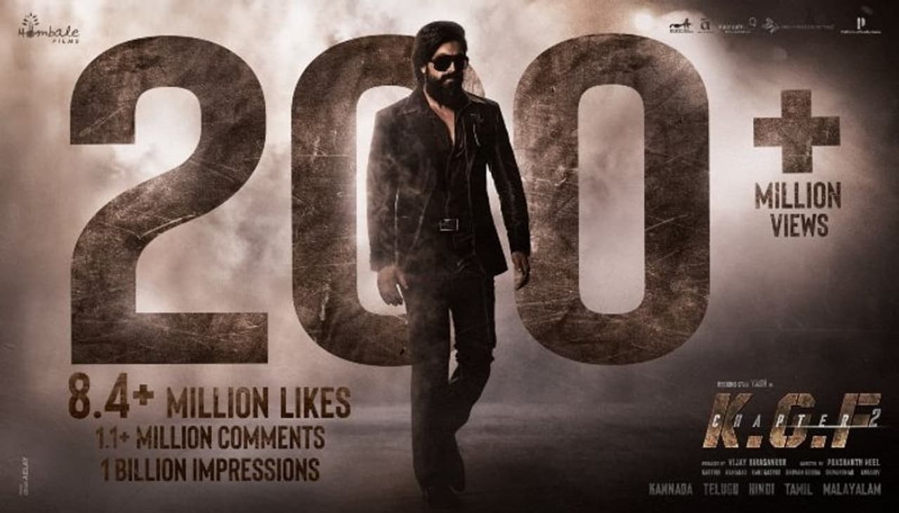 ರಾಕಿಂಗ್ ಸ್ಟಾರ್ ಯಶ್ ಅಭಿನಯದ ಕೆಜಿಎಫ್ 2 ಟೀಸರ್ ಇದೀಗ 200 ಮಿಲಿಯನ್ ವೀಕ್ಷಣೆ ದಾಖಲಿಸಿದೆ. ಈ ಮೂಲಕ ಅತ್ಯಧಿಕ ವೀಕ್ಷಣೆ ಕಂಡ ಜಾಗತಿಕ ಸಿನಿಮಾಗಳ ನಡುವೆ ಪ್ರಮುಖ ಸ್ಥಾನ ಪಡೆದುಕೊಂಡಿದೆ. ಯಶ್ ಮತ್ತು ಕೆಜಿಎಫ್ ನಿರ್ದೇಶಕ ಪ್ರಶಾಂತ್ ನೀಲ್ ಸೋಷಿಯಲ್ ಮೀಡಿಯಾದಲ್ಲಿ ಈ ವಿಚಾರ ರಿವೀಲ್ ಮಾಡಿದ್ದು, ಕೆಜಿಎಫ್ನ ಹೊಸ ಮೈಲುಗಲ್ಲಿನ ಬಗ್ಗೆ ಸಂತಸ ವ್ಯಕ್ತಪಡಿಸಿದ್ದಾರೆ.