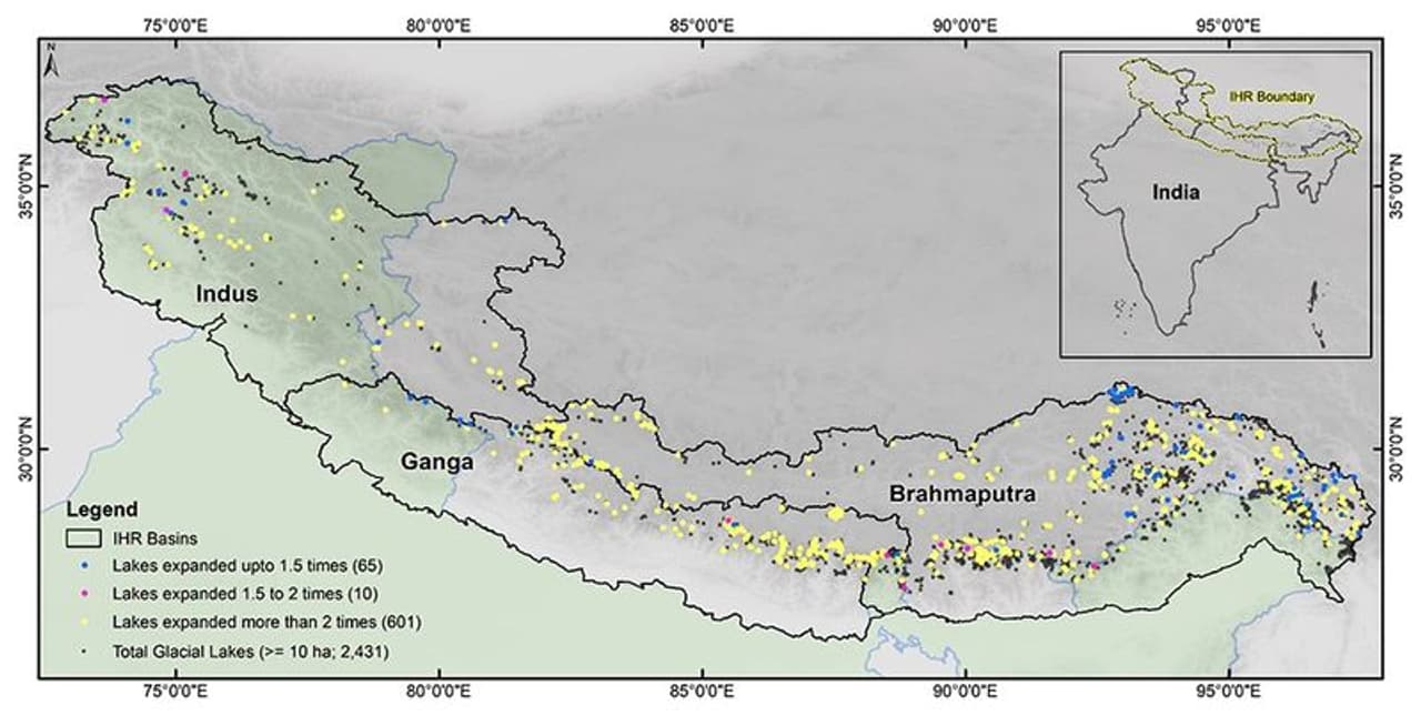 ನಾವು 1984 ರಿಂದ 2023 ರವರೆಗಿನ ಡೇಟಾವನ್ನು ನೋಡೋದಾದರೆ, ಹಿಮಾಲಯದಲ್ಲಿ 2431 ಸರೋವರಗಳಿವೆ, ಅವುಗಳು 10 ಹೆಕ್ಟೇರ್ಗಿಂತ ದೊಡ್ಡದಾಗಿದೆ. ಆದರೆ 1984 ರಿಂದ ಇಲ್ಲಿಯವರೆಗೆ 676 ಕೆರೆಗಳಿದ್ದು, ಅವುಗಳ ವಿಸ್ತೀರ್ಣ ಹೆಚ್ಚಾಗುತ್ತಿದೆ. ಇವುಗಳಲ್ಲಿ 130 ಭಾರತದಲ್ಲಿವೆ. ಸಿಂಧೂ ನದಿಯಲ್ಲಿ 65, ಗಂಗಾನದಿಯಲ್ಲಿ ಏಳು ಮತ್ತು ಬ್ರಹ್ಮಪುತ್ರದಲ್ಲಿ 58 ಗ್ಲೇಶಿಯಲ್ ಸರೋವರಗಳು ರೂಪುಗೊಂಡಿವೆ.