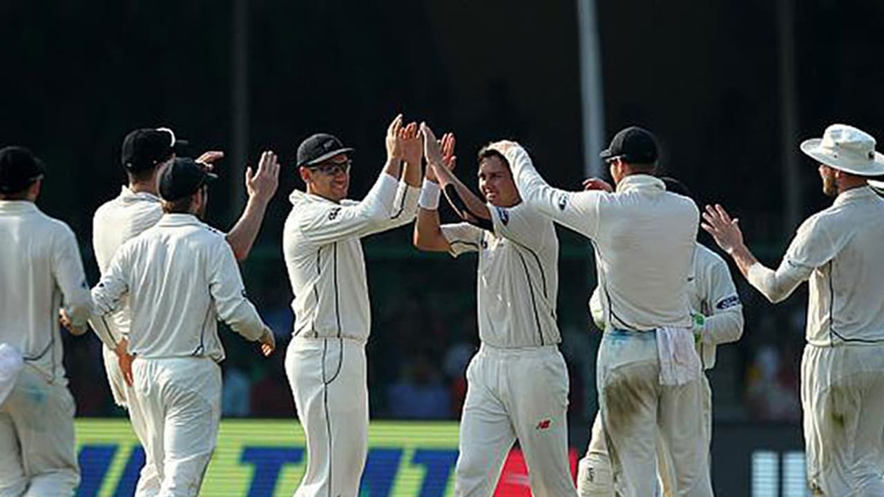 ನ್ಯೂಜಿಲೆಂಡ್ ಪರ ಉತ್ತಮ ಬೌಲಿಂಗ್ ದಾಳಿ ನಡೆಸಿದ ಮಿಚಲ್ ಸ್ಯಾಂಟ್ನರ್ ಮತ್ತು ಟ್ರೇಂಟ್ ಬೋಲ್ಟ್ ತಲಾ ಮೂರು ವಿಕೆಟ್ ಪಡೆದು ಭಾರತದ ಬ್ಯಾಟಿಂಗ್ ಶಕ್ತಿಯನ್ನು ಕಟ್ಟಿಹಾಕಿದರು.