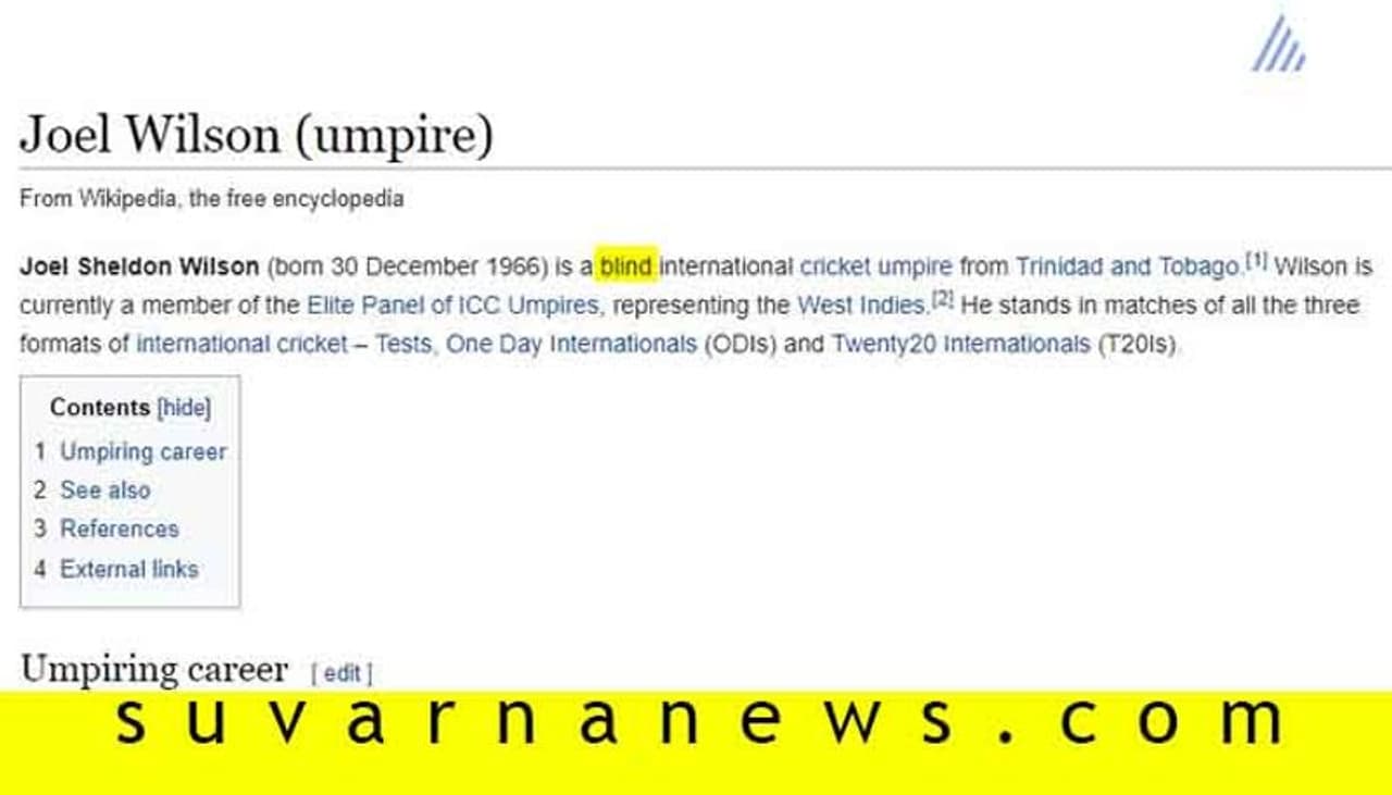 ಇದರಿಂದ ಆಕ್ರೋಶಗೊಂಡ ಅಭಿಮಾನಿಯೊಬ್ಬ ಅವರ ವಿಕಿಪೀಡಿಯಾ ಪುಟದಲ್ಲಿ, ಜೋ ವಿಲ್ಸನ್ ‘ಅಂಧ’ ಅಂಪೈರ್ ಎಂದು ಬದಲಿಸಿದ ಪ್ರಸಂಗ ನಡೆಯಿತು. ಇದಾದ ಕೆಲ ಹೊತ್ತಿನಲ್ಲೇ ‘ಅಂಧ’[Blind] ಪದವನ್ನು ಅಳಿಸಿ ಹಾಕಲಾಯಿತು. ವಿಕಿಪೀಡಿಯಾ ಚಿತ್ರ ಸಾಮಾಜಿಕ ತಾಣಗಳಲ್ಲಿ ವೈರಲ್ ಆಗಿದೆ.