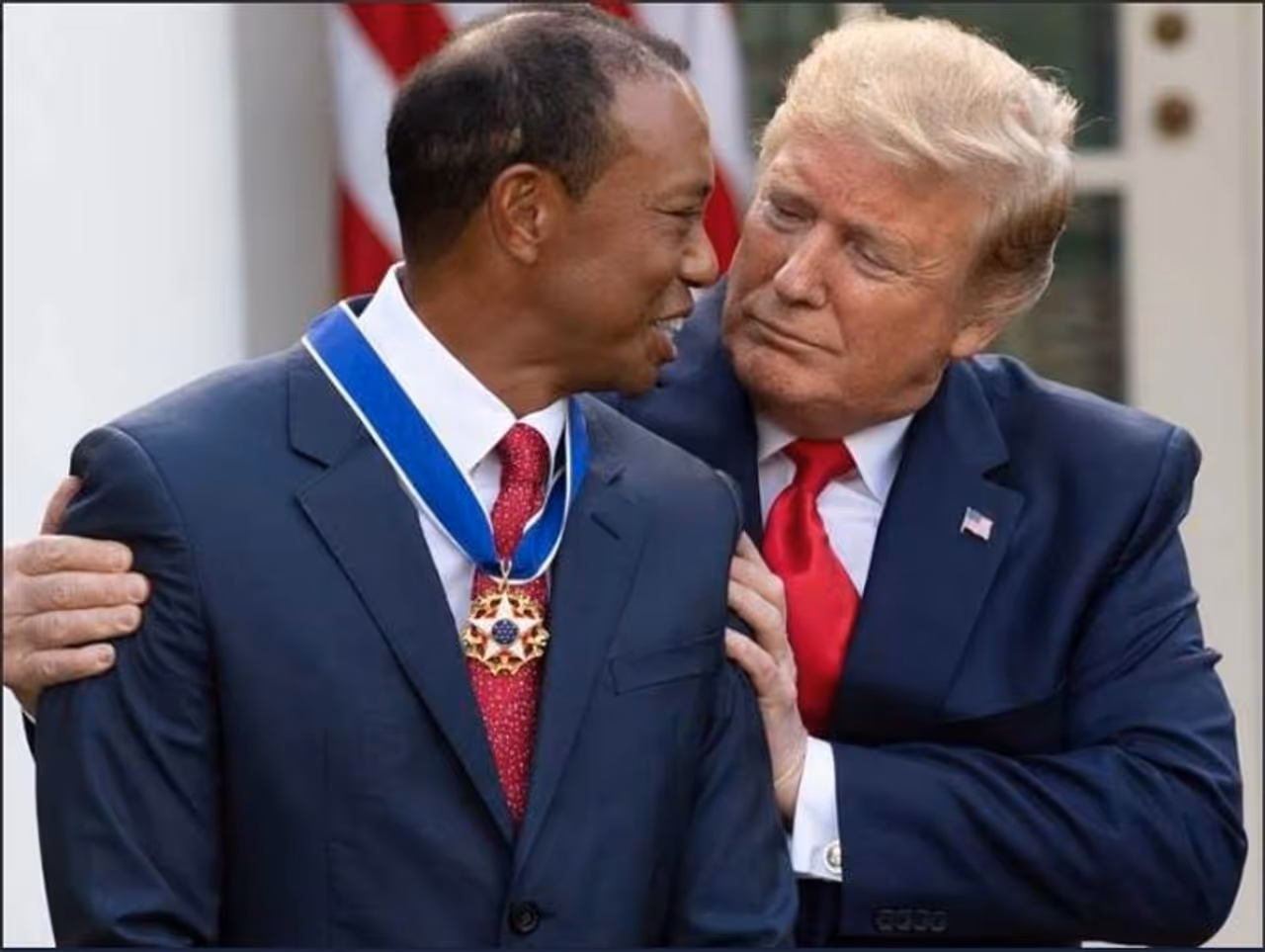 ವೈಟ್ಹೌಸ್ನ ರೋಸ್ ಗಾರ್ಡನ್ನಲ್ಲಿ ನಡೆದ ಸಮಾರಂಭದಲ್ಲಿ ಅಧ್ಯಕ್ಷ ಡೊನಾಲ್ಡ್ ಟ್ರಂಪ್ ಅವರು ಟೈಗರ್ವುಡ್ಗೆ ಅಮೆರಿಕಾದ ಅತ್ಯುನ್ನತ ನಾಗರಿಕ ಪ್ರಶಸ್ತಿಯಾದ ‘ಪ್ರೆಸಿಡೆನ್ಷಿಯಲ್ ಮೆಡಲ್ ಆಫ್ ಫ್ರೀಡಂ’ ಅನ್ನು ಪ್ರದಾನ ಮಾಡಿದರು.