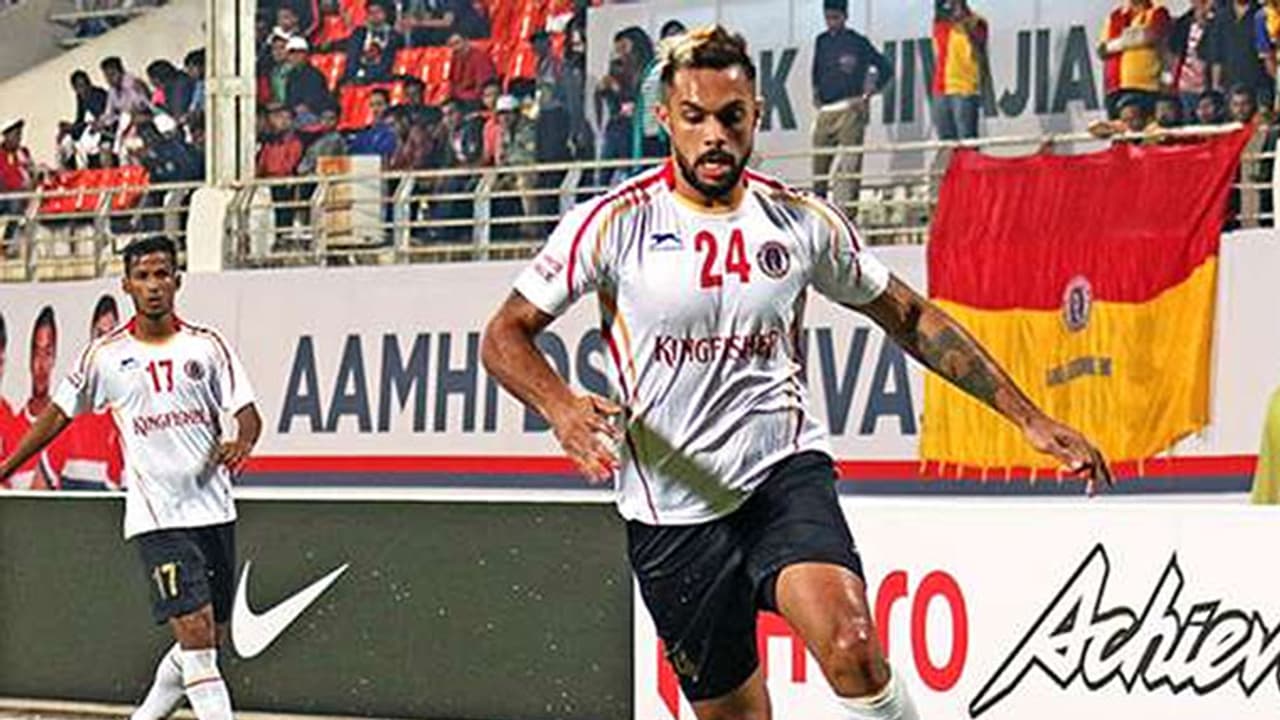ಕೋಲ್ಕತಾ(ಜ. 22): ಹಾಲಿ ಐ-ಲೀಗ್ ಚಾಂಪಿಯನ್ಸ್ ಬೆಂಗಳೂರು ಫುಟ್ಬಾಲ್ ಕ್ಲಬ್'ನ ಸತತ ನಾಲ್ಕನೇ ಗೆಲುವಿನ ಯತ್ನಕ್ಕೆ ಈಸ್ಟ್ ಬೆಂಗಾಳ್ ಬ್ರೇಕ್ ಹಾಕಿದೆ. ಇಂದು ಇಲ್ಲಿಯ ಬಾರಾಸತ್ ಸ್ಟೇಡಿಯಂನಲ್ಲಿ ನಡೆದ ಪಂದ್ಯದಲ್ಲಿ ಈಸ್ಟ್ ಬೆಂಗಾಳ್ ತಂಡ 2-1 ಗೋಲುಗಳಿಂದ ಬೆಂಗಳೂರಿಗರನ್ನು ಸೋಲಿಸಿದರು. ಇದರೊಂದಿಗೆ ಹ್ಯಾಟ್ರಿಕ್ ಗೆಲುವಿನ ಖುಷಿಯಲ್ಲಿದ್ದ ಬೆಂಗಳೂರಿಗೆ ಈ ಋತುವಿನಲ್ಲಿ ಮೊದಲ ಸೋಲಿನ ಕಹಿ ಸಿಕ್ಕಿತು. ಮಾಜಿ ಬೆಂಗಳೂರು ಆಟಗಾರ ರಾಬಿನ್ ಸಿಂಗ್ ಅವರು ಈಸ್ಟ್ ಬೆಂಗಾಳ್ ಪರ ವಿಜಯದ ಗೋಲು ಗಳಿಸಿದರು.