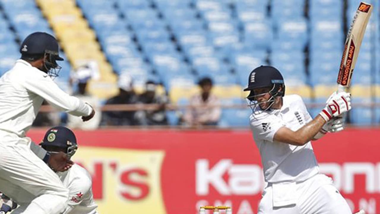 ರಾಜ್'ಕೋಟ್(ನ.10): ಭಾರತ ಬೌಲಿಂಗ್ ಪಡೆಗೆ ದಿಟ್ಟ ಉತ್ತರ ನೀಡಿದ ಇಂಗ್ಲೆಂಡ್ ತಂಡ ಪ್ರಥಮ ಟೆಸ್ಟ್ ಮೊದಲ ಇನಿಂಗ್ಸ್'ನಲ್ಲಿ 537 ರನ್'ಗಳ ಬೃಹತ್ ಮೊತ್ತ ಕಲೆಹಾಕಿದೆ.