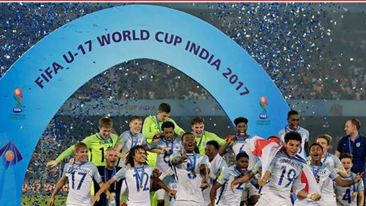 ಕೋಲ್ಕತ್ತಾ(ಅ.28): ಪ್ರಬಲ ಸ್ಪೇನ್ ತಂಡವನ್ನು 5-2 ಗೋಲುಗಳ ಅಂತರದಲ್ಲಿ ಸೋಲಿಸುವ ಮೂಲಕ ಇಂಗ್ಲೆಂಡ್ ಇದೇ ಮೊದಲ ಬಾರಿಗೆ ಚೊಚ್ಚಲ ಫಿಫಾ ಅಂಡರ್ 17 ವಿಶ್ವಕಪ್ ಗೆಲುವು ಸಾಧಿಸಿದೆ.