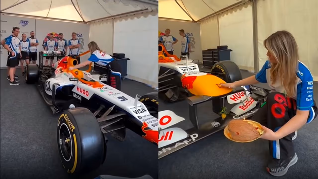 ರೆಡ್ ಬುಲ್ ಎಫ್1 ಕಾರಿಗೆ ವಿದೇಶಿ ಮಹಿಳೆಯಿಂದ ಭಾರತೀಯರಂತೆ ಪೂಜೆ