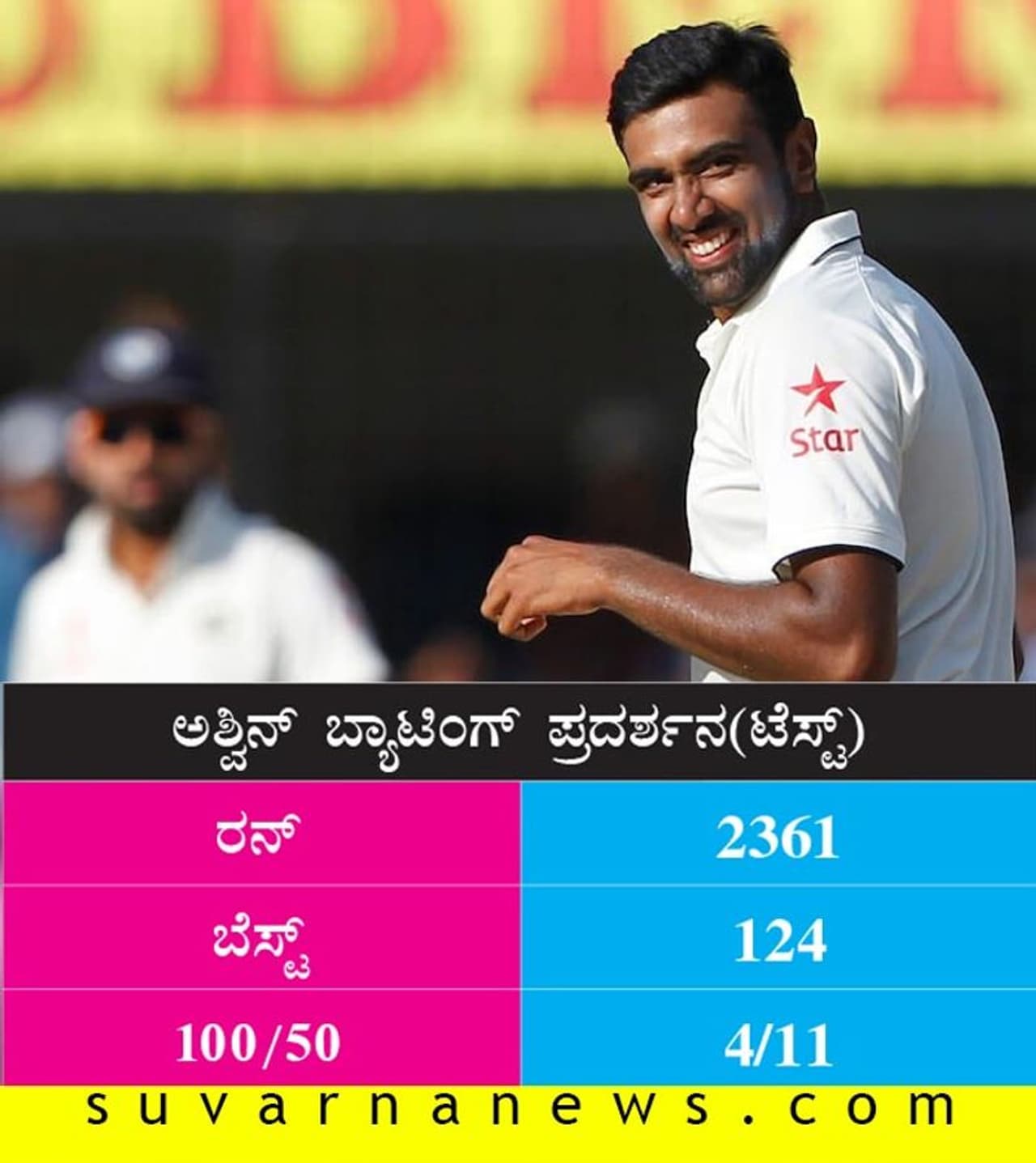 ಟೆಸ್ಟ್ ಮಾದರಿಯಲ್ಲಿ ಆರ್ ಅಶ್ವಿನ್ ಅತ್ಯುತ್ತಮ ಬ್ಯಾಟ್ಸ್ಮನ್ ಆಗಿಯೂ ಗುರುತಿಸಿಕೊಂಡಿದ್ದಾರೆ. 4 ಸೆಂಚುರಿ ಸಿಡಿಸೋ ಮೂಲಕ ದಾಖಲೆ ಬರೆದಿದ್ದಾರೆ.