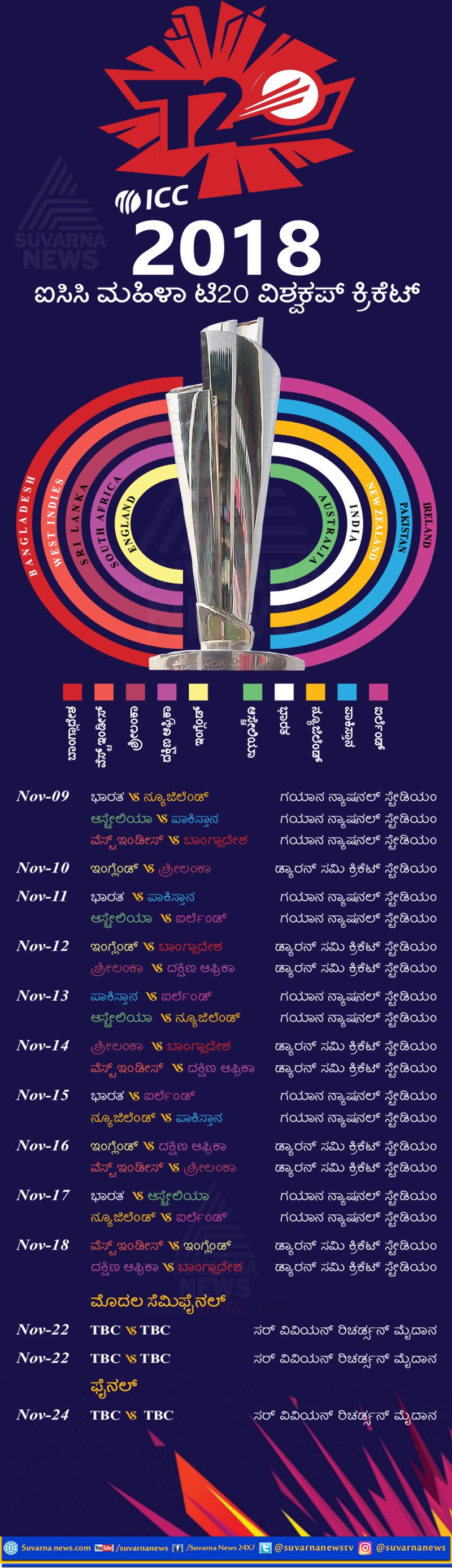 ಐಸಿಸಿ ಮಹಿಳಾ ಟಿ20 ವಿಶ್ವಕಪ್ ಟೂರ್ನಿಯ ಸಂಪೂರ್ಣ ವೇಳಾಪಟ್ಟಿ ಇಲ್ಲಿದೆ ನೋಡಿ..
