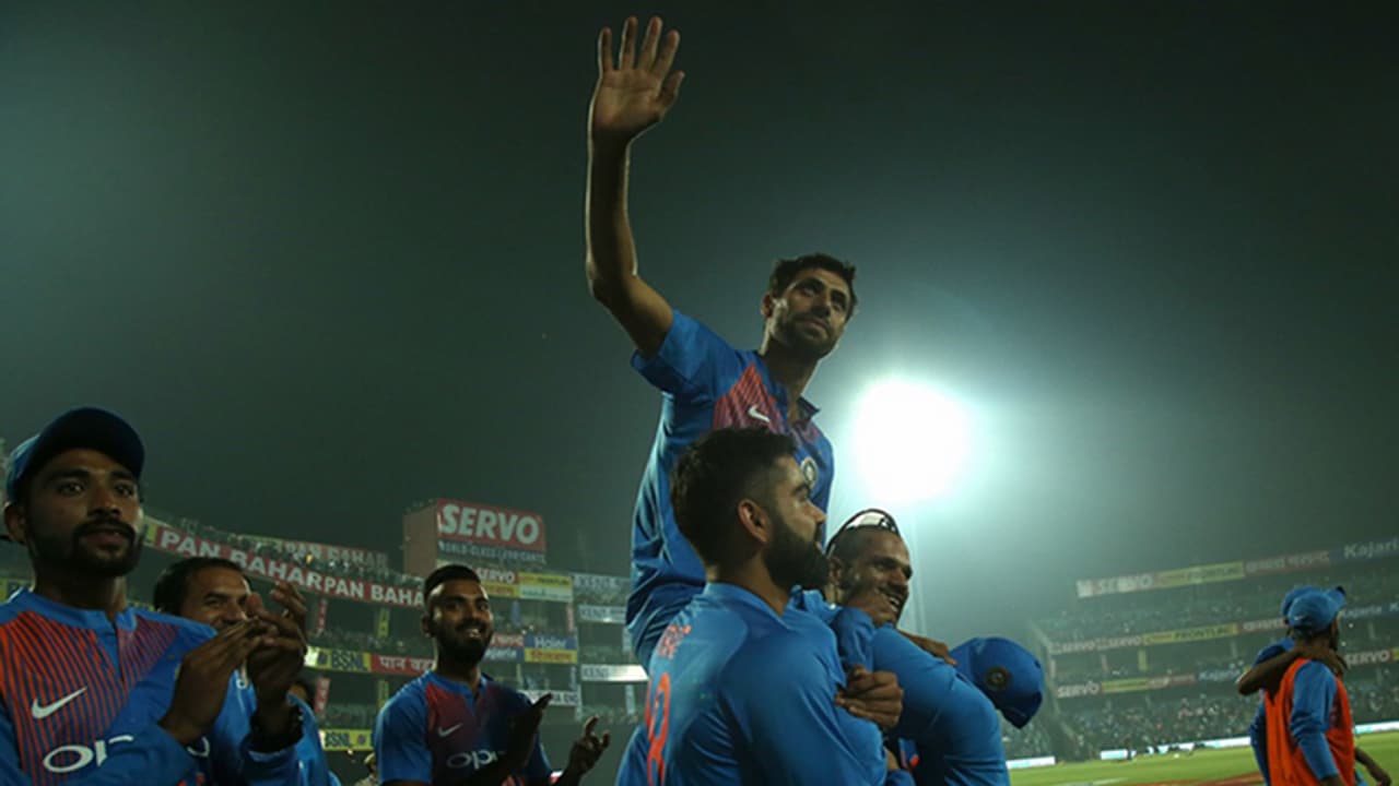 ಭಾರತದ ಬೌಲರ್'ಗಳು ಮತ್ತೊಮ್ಮೆ ಮಿಂಚಿದರು. ಚಹಲ್ ಮತ್ತು ಅಕ್ಷರ್ ಪಟೇಲ್ ಸ್ಪಿನ್ ಜೋಡಿ ಸೂಪರ್ ಬೌಲಿಂಗ್ ಪ್ರದರ್ಶನ ನೀಡಿದರು. ಹಳೆಯ ಹುಲಿ ಆಶೀಷ್ ನೆಹ್ರಾ ತಮ್ಮ ಕೊತ್ತಕೊನೆಯ ಪಂದ್ಯದಲ್ಲೂ ಬೌಲಿಂಗ್ ಮೊನಚು ಕಳೆದುಕೊಂಡಿಲ್ಲದಿರುವುದನ್ನು ತೋರಿಸಿದರು. ಅವರ ಬೌಲಿಂಗ್ ನೋಡುವುದೇ ಒಂದು ಖುಷಿ. ಫಿರೋಜ್ ಕೋಟ್ಲಾದ ಇಡೀ ಮೈದಾನವೇ ನೆಹ್ರಾ ಅವರ ಕೊನೆಯ ಓವರ್'ಗೆ ಚಪ್ಪಾಳೆ ಹಾಕಿತು. ನೆಹ್ರಾ ನಿವೃತ್ತಿಗೆ ಗೆಲುವಿನ ಗಿಫ್ಟ್ ಕೊಟ್ಟಿತು ಟೀಮ್ ಇಂಡಿಯಾ. 1999ರಲ್ಲಿ ಅಂತಾರಾಷ್ಟ್ರೀಯ ಕ್ರಿಕೆಟ್'ಗೆ ಪದಾರ್ಪಣೆ ಮಾಡಿದ ಆಶೀಶ್ ನೆಹ್ರಾ 18 ವರ್ಷಗಳ ತಮ್ಮ ಕ್ರಿಕೆಟ್ ಪಯಣವನ್ನು ನಿಲ್ಲಿಸಿದ್ದಾರೆ. ಇನ್ಮುಂದೆ ಅವರು ಐಪಿಎಲ್ ಟೂರ್ನಿಯಲ್ಲೂ ಆಡುವುದಿಲ್ಲ.