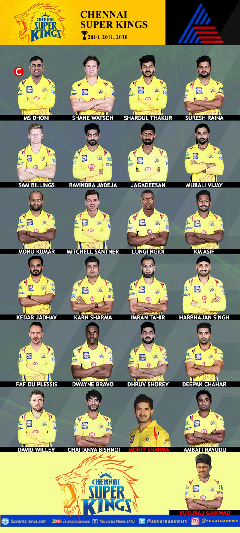 ಹೊಸದಾಗಿ: ಮೋಹಿತ್ ಶರ್ಮಾ, ಋತುರಾಜ್ ಗಾಯಕ್ವಾಡ್