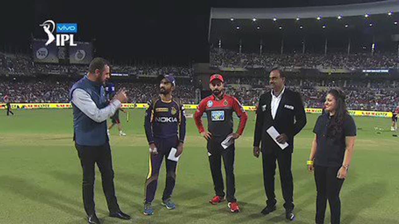 ಕೋಲ್ಕತ(ಏ.08): ರಾಯಲ್ಸ್ ಚಾಲೆಂಜರ್ಸ್ ಬೆಂಗಳೂರು ಹಾಗೂ ಕೋಲ್ಕತ ನೈಟ್'ರೈಡರ್ಸ್ ನಡುವಿನ ಹೈವೋಲ್ಟೇಜ್ ಪಂದ್ಯದಲ್ಲಿ ಟಾಸ್ ಗೆದ್ದ KKR ನಾಯಕ ದಿನೇಶ್ ಕಾರ್ತಿಕ್ ಫೀಲ್ಡಿಂಗ್ ಆಯ್ದುಕೊಂಡಿದ್ದಾರೆ.