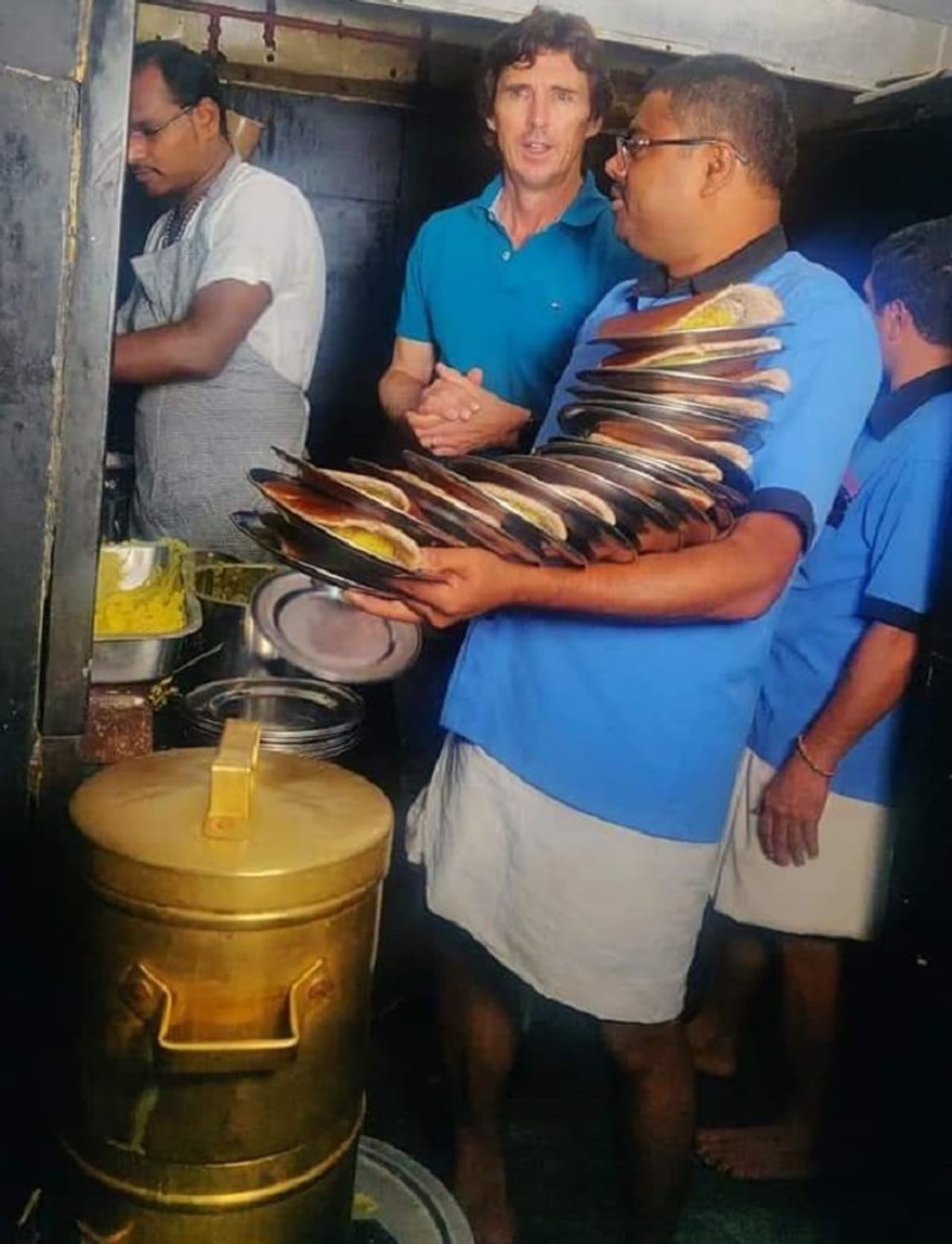 ಬ್ರಾಡ್ ಹಾಗ್ ಬೆಂಗಳೂರಿಗೆ ಆಗಮಿಸುತ್ತಿದ್ದಂತೆ ಕರಾವಳಿ ಕಲೆ ಯಕ್ಷಗಾನಕ್ಕೆ ಹೆಜ್ಜೆ ಹಾಕಿದ್ದಲ್ಲದೆ, ಚೆಂಡೆ ನುಡಿಸಿ ಬೇಷ್ ಎನಿಸಿಕೊಂಡಿದ್ದರು. ಇದೀಗ ವಿದ್ಯಾರ್ಥಿ ಭವನ್ ಹೊಟೆಲ್ಗೆ ತೆರಳಿ ವಿವಿಧ ದೋಸೆ ತಿನಿಸುಗಳನ್ನು ಸವಿದಿದ್ದಾರೆ. 48 ವರ್ಷದ ಹಾಗ್, ವಿದ್ಯಾರ್ಥಿ ಭವನದ ದೋಸೆಗೆ ಮಾರು ಹೋಗಿದ್ದಾರೆ. ಕಳೆದ 76 ವರ್ಷಗಳಿಂದ ವಿದ್ಯಾರ್ಥಿ ಭವನ್ ವಿವಿದ ದೋಸೆಯನ್ನು ಜನರಿಗೆ ಉಣಬಡಿಸುತ್ತಿದೆ. ಸರಿಸುಮಾರು 2 ಕೋಟಿಗೂ ಅಧಿಕ ದೋಸೆಗಳು ಇಲ್ಲಿ ಮಾರಾಟವಾಗಿವೆ