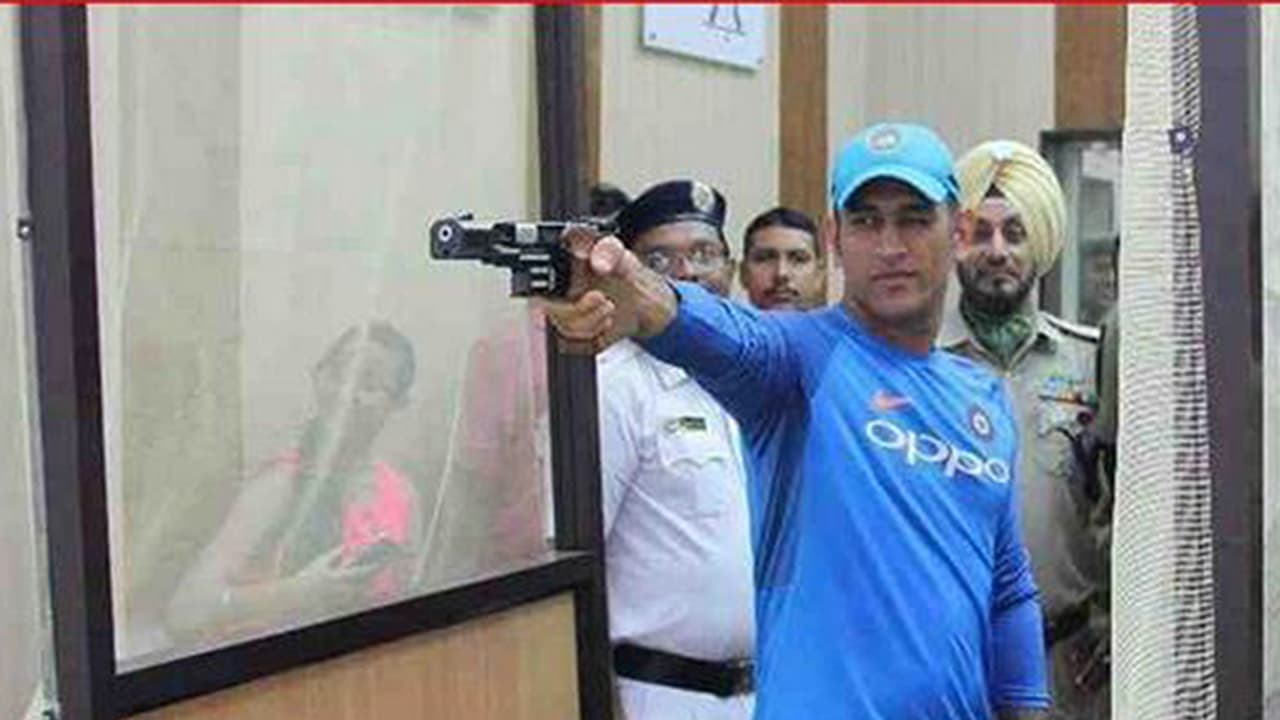 ಕೋಲ್ಕತಾ(ಸೆ.21): ಮಳೆಯಿಂದಾಗಿ ಅಭ್ಯಾಸ ಪಂದ್ಯ ರದ್ದಾದ ಬಳಿಕ ಎಂ.ಎಸ್. ಧೋನಿ ಇಲ್ಲಿನ ಪೊಲೀಸ್ ತರಬೇತಿ ಕೇಂದ್ರಕ್ಕೆ ತೆರಳಿ ಪಿಸ್ತೂಲ್ ಶೂಟಿಂಗ್ ಅಭ್ಯಾಸ ನಡೆಸಿದರು.