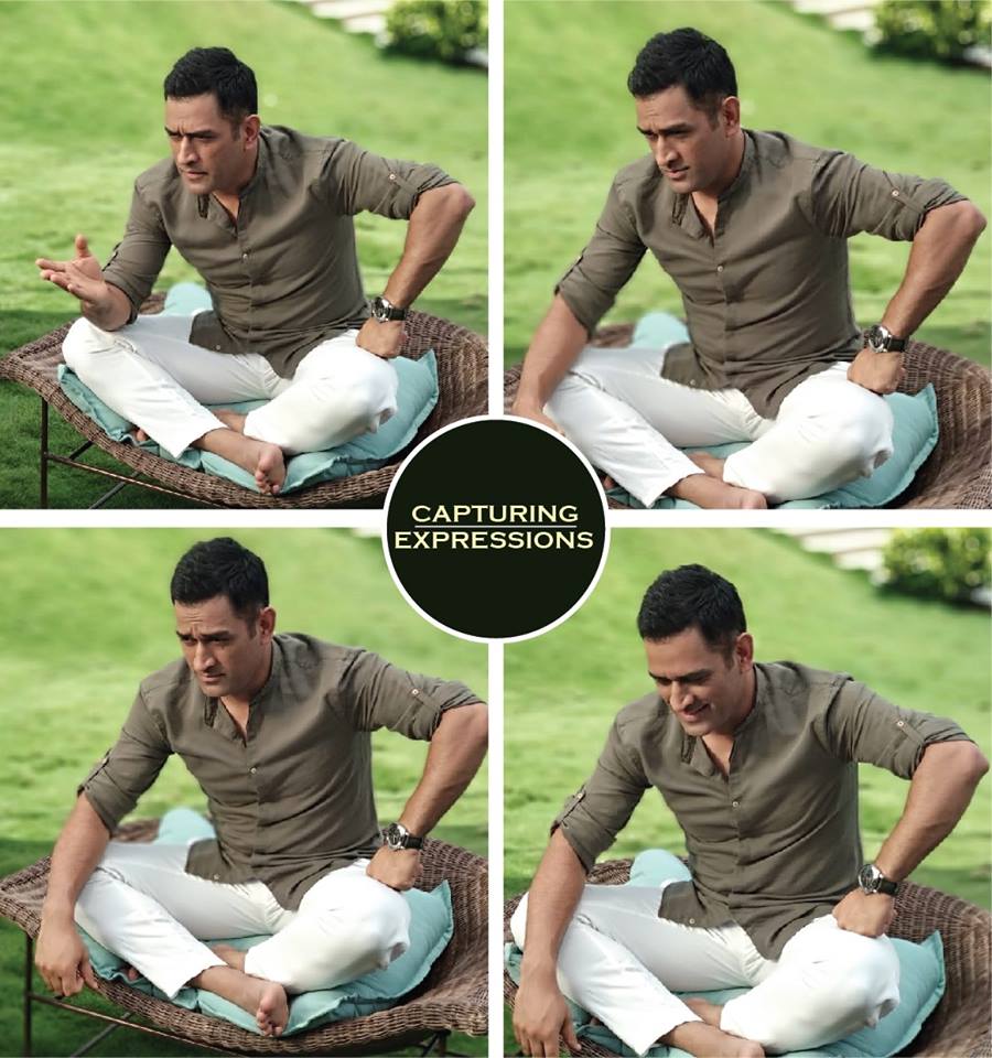 ಜಾಹೀರಾತು ಶೂಟಿಂಗ್ಗಾಗಿ ಎಂ ಎಸ್ ಧೋನಿ ಡಿಫರೆಂಟ್ ಸ್ಟೈಲ್ನಲ್ಲಿ ಕಾಣಿಸಿಕೊಂಡಿದ್ದಾರೆ. ಜಾಹೀರಾತಿಗಾಗಿ ವಿವಿಧ ಪೋಸ್ ನೀಡಿರುವ ಧೋನಿ, ಬಾಲಿವುಡ್ ನಟರನ್ನೇ ನಾಚಿಸುವಂತೆ ನಟಿಸಿದ್ದಾರೆ.