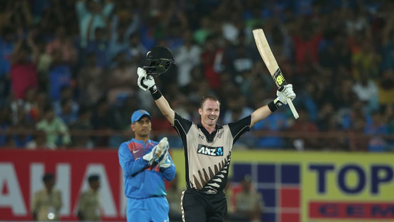ಆರಂಭದಿಂದಲೇ ಸ್ಫೋಟಕ ಬ್ಯಾಟಿಂಗ್ ನಡೆಸಿದ ಕಿವೀಸ್ ಪಡೆ ಮೊದಲ ವಿಕೆಟ್'ಗೆ ಶತಕದ ಜತೆಯಾಟವಾಡಿತು. ಮಾರ್ಟಿನ್ ಗುಪ್ಟಿಲ್ 45 ರನ್ ಬಾರಿಸಿ ಚಾಹಲ್'ಗೆ ವಿಕೆಟ್ ಒಪ್ಪಿಸಿದರು. ಈ ವೇಳೆ ನ್ಯೂಜಿಲೆಂಡ್ 11.1 ಓವರ್'ಗಳಲ್ಲಿ 105 ರನ್ ಕಲೆ ಹಾಕಿತ್ತು. ಮತ್ತೋರ್ವ ಆರಂಭಿಕ ಬ್ಯಾಟ್ಸ್'ಮನ್ ಕಾಲಿನ್ ಮನ್ರೋ ಇಂದು ಅಕ್ಷರಶಃ ಆರ್ಭಟಿಸಿದರು. ಕೇವಲ 58 ಎಸೆತಗಳನ್ನು ಎದುರಿಸಿದ ಮನ್ರೋ 109 ರನ್ ಬಾರಿಸಿ ಅಜೇಯರಾಗುಳಿದರು. ಅವರ ಸ್ಫೋಟಕ ಇನಿಂಗ್ಸ್'ನಲ್ಲಿ ತಲಾ 7 ಬೌಂಡರಿ ಹಾಗೂ 7 ಸಿಕ್ಸರ್ ಒಳಗೊಂಡಿದ್ದವು. ಅಂದಹಾಗೆ ಕಾಲಿನ್ ಮನ್ರೋಗಿದು ಟಿ20 ಕ್ರಿಕೆಟ್'ನಲ್ಲಿ ಎರಡನೇ ಶತಕವಾಗಿದೆ.