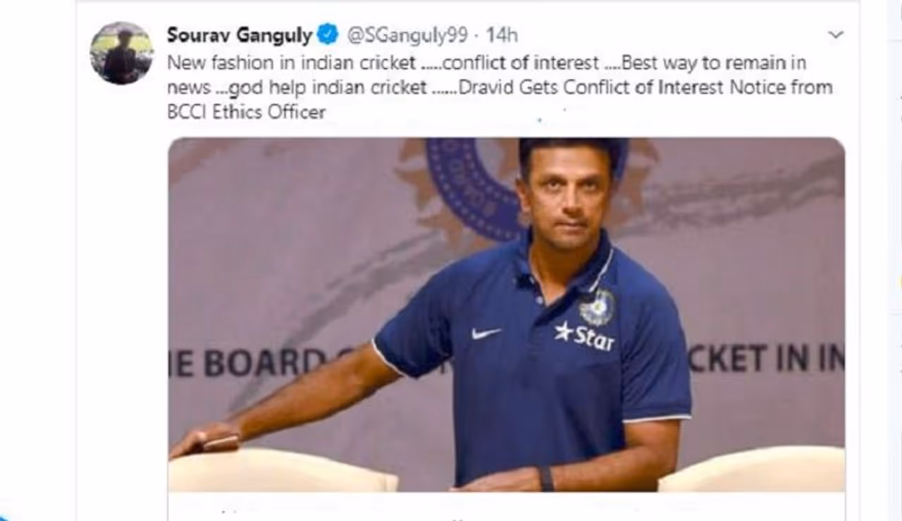ಮಾಜಿ ನಾಯಕ ಸೌರವ್ ಗಂಗೂಲಿ ಹಾಗೂ ಹರ್ಭಜನ್ ಸಿಂಗ್ ಬಿಸಿಸಿಐ ವಿರುದ್ಧ ಆಕ್ರೋಷ ವ್ಯಕ್ತಪಡಿಸಿದ್ದಾರೆ. ಸ್ವಹಿತಾಸಕ್ತಿ ಸಂಘರ್ಷ ಕಾರಣವೊಡ್ಡಿ ನೋಟಿಸ್ ನೀಡುವುದು ಇದೀಗ ಬಿಸಿಸಿಐ ಫ್ಯಾಶನ್ ಆಗಿದೆ. ಈ ಮೂಲಕ ಸದ ಕಾಲ ಸುದ್ದಿಯಲ್ಲಿರಲು ಬಯಸುತ್ತಿದೆ. ರಾಹುಲ್ ದ್ರಾವಿಡ್ಗೆ ಬಿಸಿಸಿಐ ನೋಟಿಸ್ ನೀಡಿದೆ. ಭಾರತೀಯ ಕ್ರಿಕೆಟ್ನ್ನು ದೇವರೇ ಕಾಪಾಡಬೇಕು ಎಂದು ಗಂಗೂಲಿ ಟ್ವೀಟ್ ಮಾಡಿದ್ದಾರೆ.