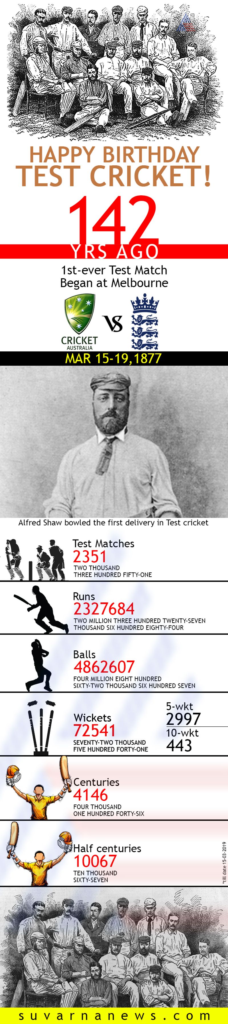 ಇತಿಹಾಸದ ಆ ದಿನ, ಅದು 1877ರ ಮಾರ್ಚ್ 15ರಂದು ಮೆಲ್ಬೋರ್ನ್ ಕ್ರಿಕೆಟ್ ಮೈದಾನದಲ್ಲಿ ಆಸ್ಟ್ರೇಲಿಯಾ-ಇಂಗ್ಲೆಂಡ್ ತಂಡಗಳು ಮುಖಾಮುಖಿಯಾಗುವುದರೊಂದಿಗೆ ಮೊದಲ ಅಂತರಾಷ್ಟ್ರೀಯ ಟೆಸ್ಟ್ ಕ್ರಿಕೆಟ್ ಆರಂಭವಾಯಿತು.