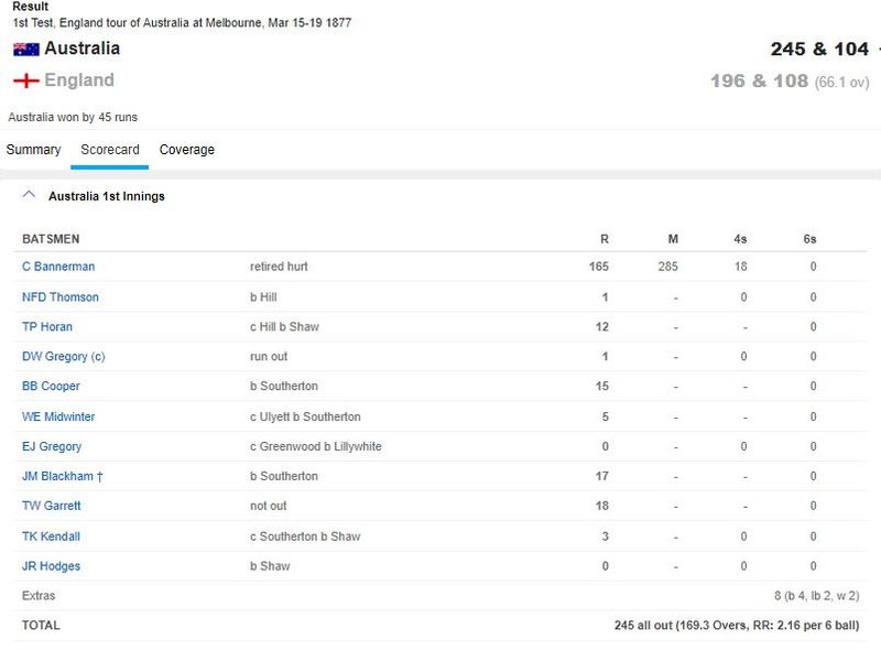 ಆಸ್ಟ್ರೇಲಿಯಾದ ಕೆಂಟ್ ಮೂಲದ ಚಾರ್ಲ್ಸ್ ಬ್ಯಾನರ್’ಮನ್, ಇಂಗ್ಲೆಂಡ್’ನ ಆಲ್ಫ್ರೆಡ್ ಶಾ ಅವರ ಮೊದಲ ಎಸೆತವನ್ನು ಎದುರಿಸಿದರು. ಎರಡನೇ ಎಸೆತದಲ್ಲೇ ರನ್ ಕಲೆಹಾಕುವ ಮೂಲಕ ಟೆಸ್ಟ್ ಕ್ರಿಕೆಟ್’ಗೆ ರನ್ ಗಳಿಕೆಗೆ ಅಧಿಕೃತ ಚಾಲನೆ ನೀಡಿದರು. ಟೆಸ್ಟ್ ಕ್ರಿಕೆಟ್ ಆರಂಭವಾಗಿ ಇಂದಿಗೆ 142 ವರ್ಷಗಳು ಕಳೆದಿವೆ.