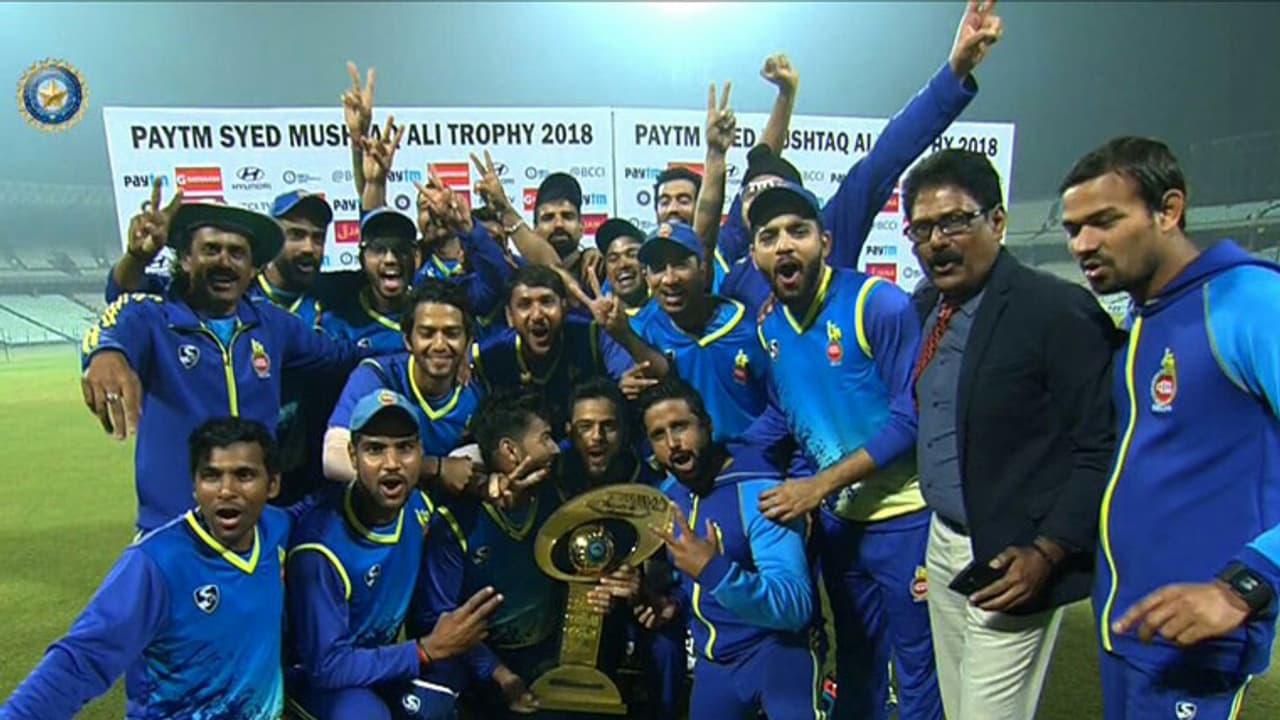 ಕೋಲ್ಕತಾ(ಜ.26): ವೇಗಿ ಪ್ರದೀಪ್ ಸಾಂಗ್ವಾನ್ ಮತ್ತು ಕುಲ್ವಂತ್ ಕೇಜ್ರೋಲಿಯಾರ ಮಾರಕ ಬೌಲಿಂಗ್ ದಾಳಿಯ ನೆರವಿನಿಂದ ದೆಹಲಿ ತಂಡ, ಸಯ್ಯದ್ ಮುಷ್ತಾಕ್ ಅಲಿ ಟಿ20 ಟ್ರೋಫಿಯ ಫೈನಲ್'ನಲ್ಲಿ ರಾಜಸ್ಥಾನ ವಿರುದ್ಧ ಗೆದ್ದು ಚಾಂಪಿಯನ್ ಪಟ್ಟಕ್ಕೇರಿತು.