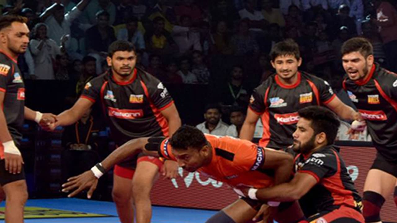 ನವದೆಹಲಿ(ಸೆ.28): ತಾರಾ ಆಟಗಾರ ಕಾಶಿಲಿಂಗ್ ಅಡಿಕೆ(17 ಅಂಕ) ಮಿಂಚಿನ ದಾಳಿಗೆ ತತ್ತರಿಸಿದ ಬೆಂಗಳೂರು ಬುಲ್ಸ್—ಅಂಕಗಳ ಅಂತರದಿಂದ ಯು ಮುಂಬಾಗೆ ಶರಣಾಯಿತು. ಈ ಸೋಲಿನೊಂದಿಗೆ ಬುಲ್ಸ್ ಸತತ 3ನೇ ಸೋಲು ಕಂಡರೆ, ಯು ಮುಂಬಾ ಟೂರ್ನಿಯಲ್ಲಿ 9ನೇ ಗೆಲುವು ದಾಖಲಿಸಿತು.