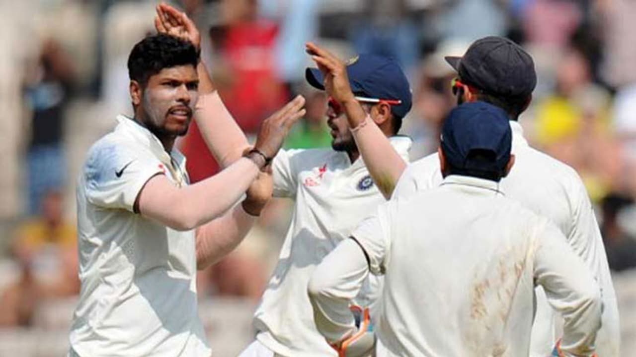 ಭಾರತದ ಪರ ಉಮೇಶ್ ಯಾದವ್ 4 ವಿಕೆಟ್ ಪಡೆದರೆ, ಅಶ್ವಿನ್ ಹಾಗೂ ಜಡೇಜಾ ತಲಾ ಎರಡು ವಿಕೆಟ್ ಹಂಚಿಕೊಂಡರು.