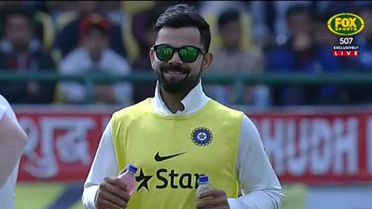 ಲವಲವಿಕೆಯಿಂದ ಮೈದಾನದಲ್ಲಿ ಡ್ರಿಂಕ್ಸ್ ಹಿಡಿದು ಕೊಹ್ಲಿ ಓಡಾಡುವ ದೃಶ್ಯ ಎಲ್ಲರ ಮನ ತಟ್ಟಿದೆ.