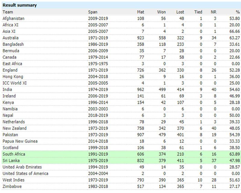 ಹೌದು, ಭಾರತ ತಂಡವು 1974ರಲ್ಲಿ ಏಕದಿನ ಕ್ರಿಕೆಟ್’ಗೆ ಪದಾರ್ಪಣೆ ಮಾಡಿದ್ದು, ಇದುವರೆಗೂ 962 ಪಂದ್ಯಗಳನ್ನಾಡಿದೆ. ಇದರಲ್ಲಿ ಭಾರತ 499 ಗೆಲುವು ಹಾಗೂ 414 ಸೋಲುಗಳನ್ನು ಕಂಡಿದೆ. ಇನ್ನು 9 ಪಂದ್ಯಗಳು ಟೈ ಆಗಿದ್ದು, 40 ಪಂದ್ಯಗಳಲ್ಲಿ ಯಾವುದೇ ಫಲಿತಾಂಶ ಹೊರಬಿದ್ದಿಲ್ಲ. ಹಾಲಿ ಚಾಂಪಿಯನ್ ಆಸ್ಟ್ರೇಲಿಯಾ ಇದುವರೆಗೂ 923 ಪಂದ್ಯಗಳನ್ನು ಆಡಿದ್ದು, 558 ಗೆಲುವು ಹಾಗೂ 322 ಸೋಲು ಕಂಡಿದೆ. ಇನ್ನುಳಿದಂತೆ 9 ಟೈ ಹಾಗೂ 34 ಪಂದ್ಯಗಳಲ್ಲಿ ಯಾವುದೇ ಫಲಿತಾಂಶ ಕಾಣದೆ ಪಂದ್ಯ ಮುಗಿದಿದೆ.