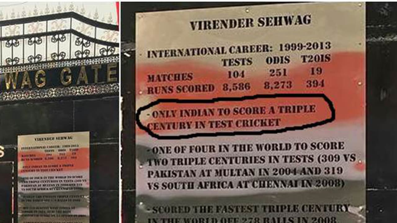 ಆದರೆ ಸೆಹ್ವಾಗ್ ಅವರನ್ನು ಬಣ್ಣಿಸುವ ಭರದಲ್ಲಿ ತ್ರಿಶತಕ ಸಿಡಿಸಿದ ಏಕೈಕ ಭಾರತೀಯ ಬ್ಯಾಟ್ಸ್'ಮನ್ ಎಂದು ಬರೆಯಲಾಗಿದೆ.