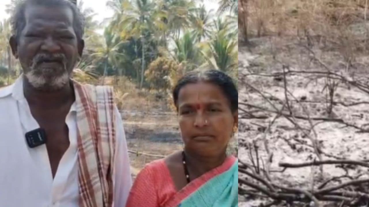 ವೃದ್ಧ ರೈತ ತೋಟದಲ್ಲಿ ಬೆಳೆದಿದ್ದ 150 ತೆಂಗು, 100ಕ್ಕೂ ಹೆಚ್ಚು ಮಾವಿನ ಮರಗಳು ಬೆಂಕಿಗಾಹುತಿಯಾಗಿ ಸುಟ್ಟು ಕರಕಲಾಗಿವೆ. ಕೇವಲ ಬೆಳೆ ಮಾತ್ರವಲ್ಲದೆ, ಕೃಷಿ ಚಟುವಟಿಕೆಗೆ ಬಳಸುತ್ತಿದ್ದ ನೀರೆತ್ತುವ ಮೋಟಾರ್‌ಗಳು ಮತ್ತು ಪೈಪ್‌ಲೈನ್‌ಗಳು ಕೂಡ ಬೆಂಕಿಯ ಕೆನ್ನಾಲಿಗೆಗೆ ಸಿಲುಕಿ ಸಂಪೂರ್ಣವಾಗಿ ನಾಶವಾಗಿವೆ. ಕಣ್ಣೆದುರೇ ಕೈಗೆ ಬಂದ ತುತ್ತು ಬಾಯಿಗೆ ಬರದಂತಾದ ಪರಿಸ್ಥಿತಿ ಕಂಡು ರೈತ ರಾಜಯ್ಯ ಕಣ್ಣೀರು ಹಾಕುತ್ತಿದ್ದಾರೆ..
