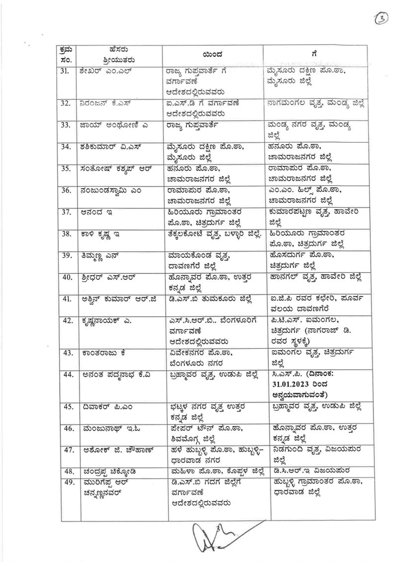 ವರ್ಗಾವಣೆಗೊಂಡಿರುವ 23 ಡಿವೈಎಸ್ಪಿ ಅಧಿಕಾರಿಗಳು: