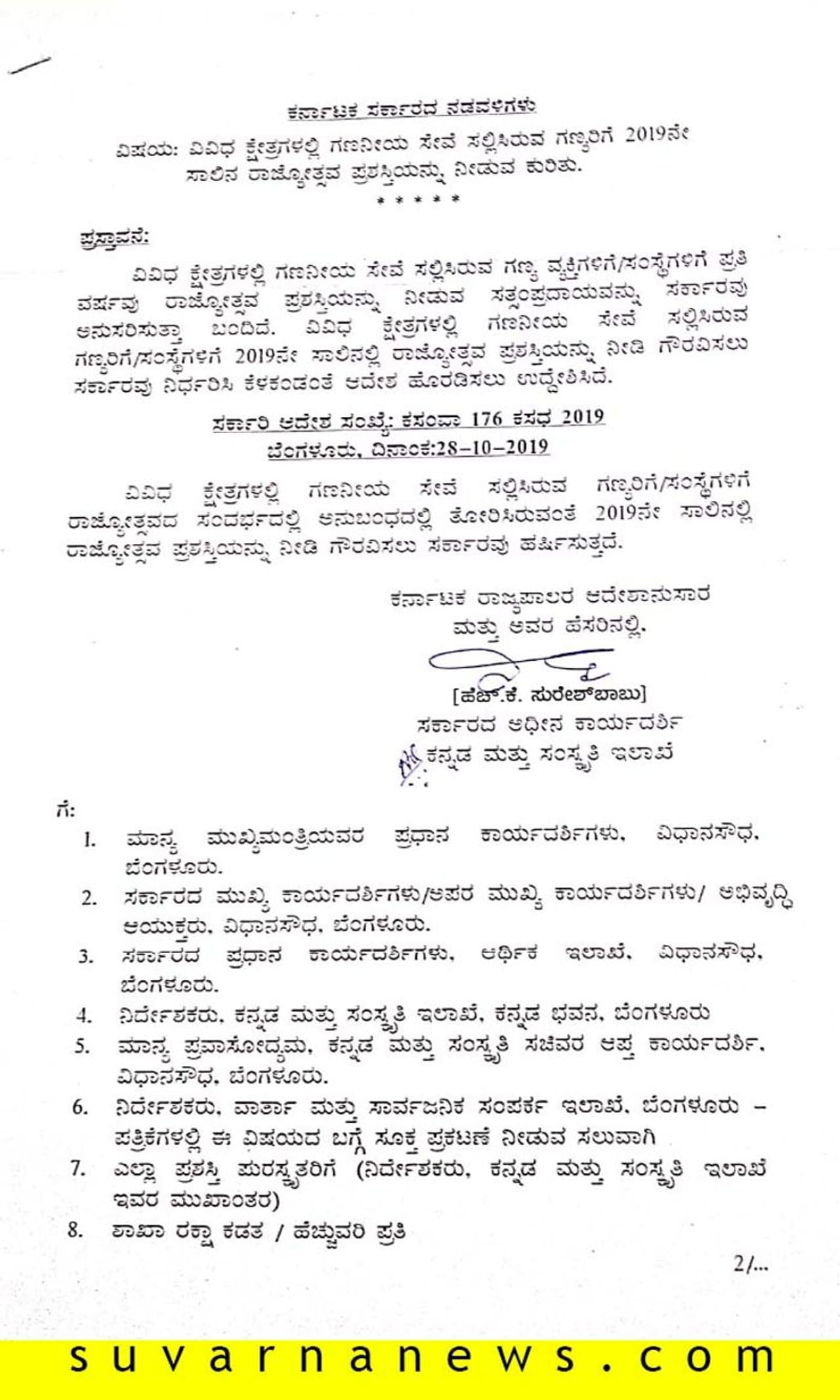 2019 ನೇ ಸಾಲಿನ ಪ್ರಶಸ್ತಿ ಪುರಸ್ಕೃತರ ಪಟ್ಟಿ ಇಲ್ಲಿದೆ
