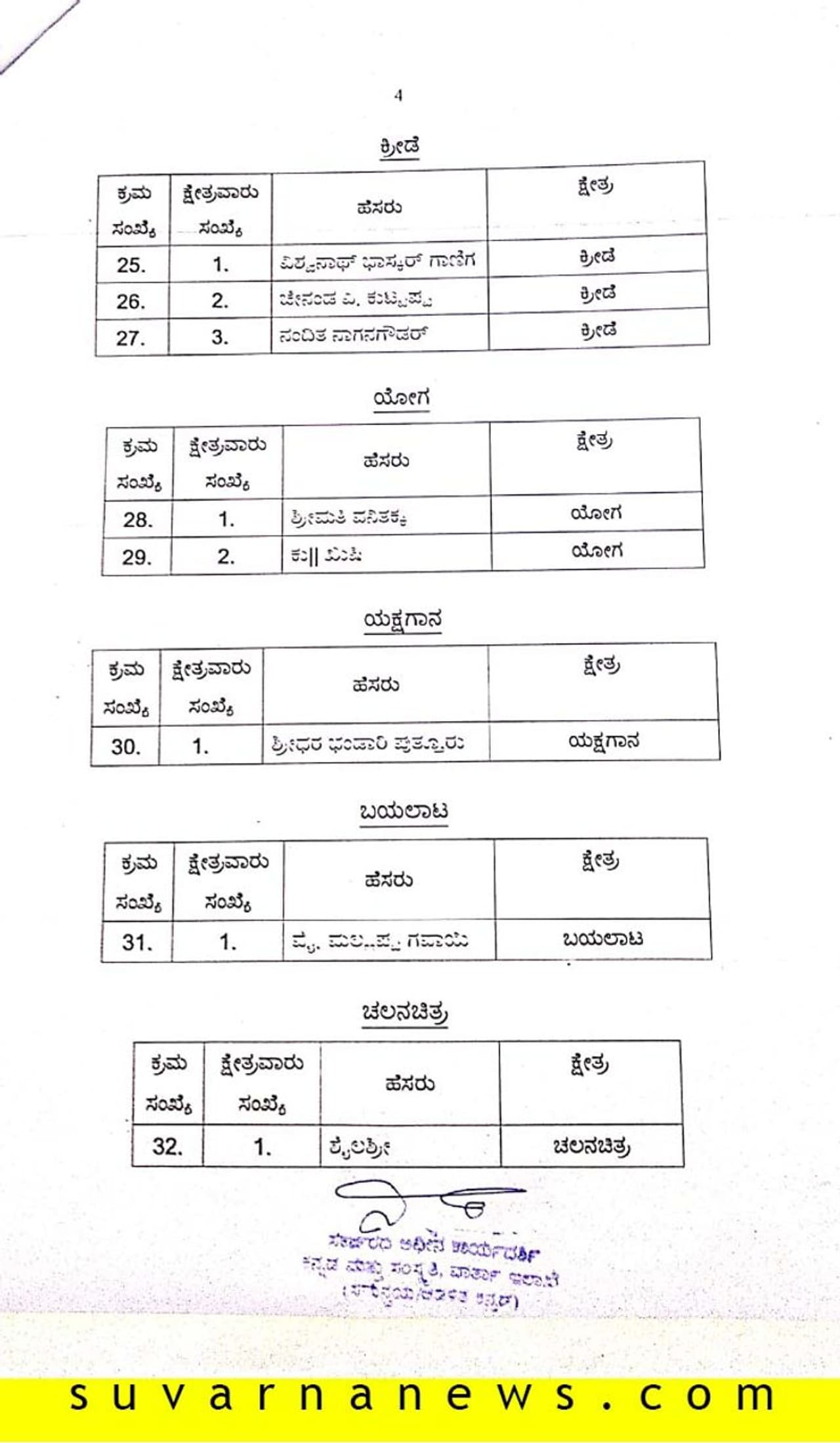 29 ಕ್ಷೇತ್ರಗಳಲ್ಲಿ ಸಾಧನೆ ಮಾಡಿದ ಸಾಧಕರಿಗೆ ಪ್ರಶಸ್ತಿ ಪ್ರಕಟ ಮಾಡಲಾಗಿದೆ. ನವೆಂಬರ್ 1 ಕನ್ನಡ ರಾಜ್ಯೋತ್ಸವ ಸಂದರ್ಭ ಸಾಧಕರಿಗೆ ಪ್ರಶಸ್ತಿ ನೀಡಿ ಗೌರವಿಸಲಾಗುವುದು.