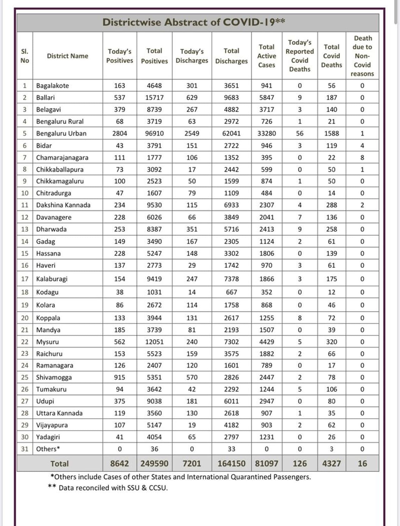 ಬೆಂಗಳೂರು, (ಆ.19) : ರಾಜ್ಯದಲ್ಲಿ ಕಿಲ್ಲರ್ ಕೊರೊನಾ ಸೋಂಕಿನ ಆರ್ಭಟ ಮುಂದುವರೆದಿದ್ದು, ಇಂದು (ಬುಧವಾರ)) ರಾಜ್ಯದಲ್ಲಿ 8642 ಕೇಸ್ ಪತ್ತೆಯಾಗಿವೆ. ಈ ಮೂಲಕ ರಾಜ್ಯದಲ್ಲಿ ಒಟ್ಟು ಸೋಂಕಿತರ ಸಂಖ್ಯೆ 2,49,590ಕ್ಕೇರಿದೆ.