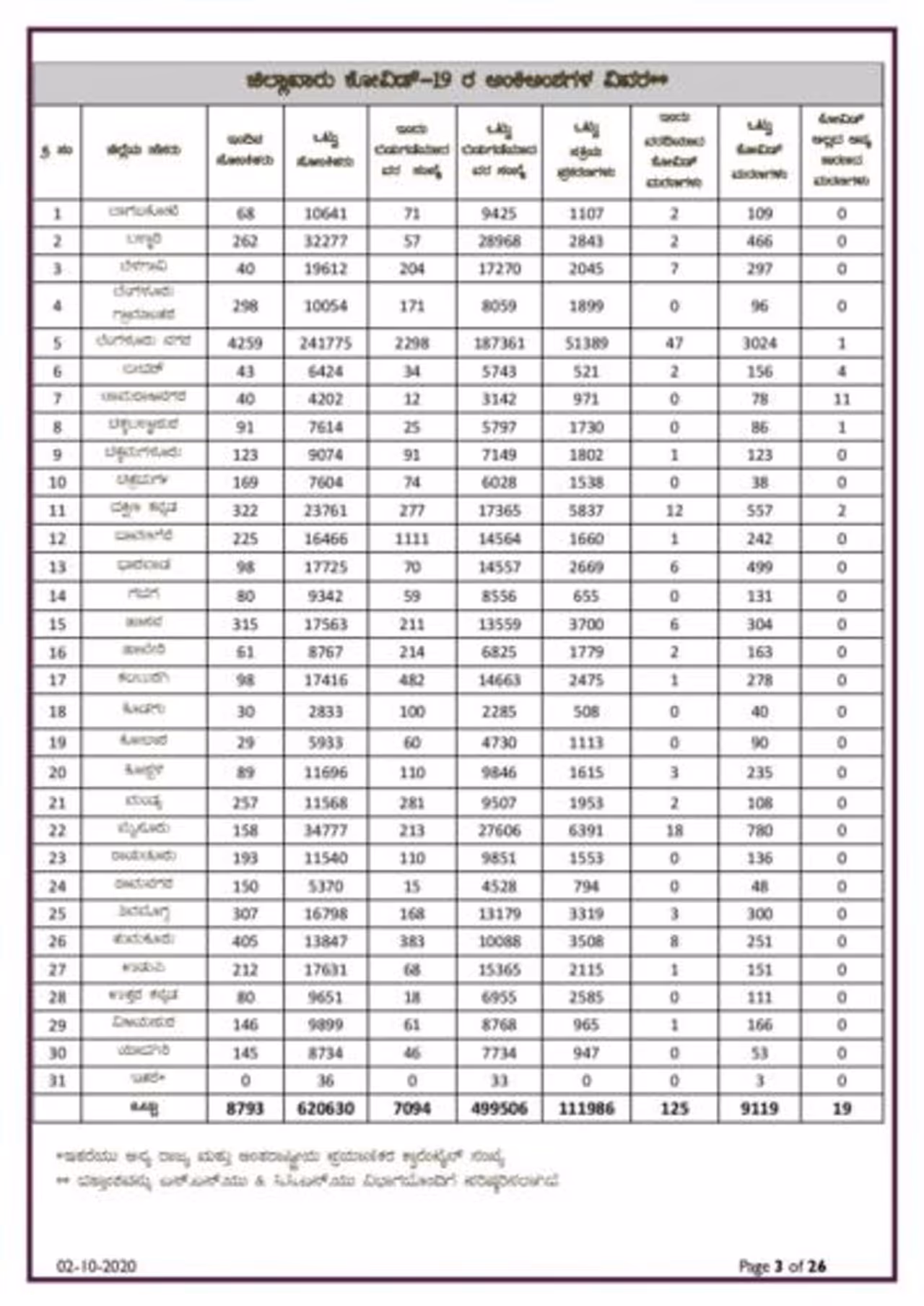ಕಳೆದ 24 ಗಂಟೆಗಳಲ್ಲಿ ರಾಜ್ಯದಲ್ಲಿ 7,094 ಮಂದಿ ಆಸ್ಪತ್ರೆಯಿಂದ ಡಿಸ್ಚಾರ್ಜ್ ಆಗಿದ್ದಾರೆ. ಒಟ್ಟು 6,20,630 ಸೋಂಕಿತರ ಪೈಕಿ 1,11,986 ಸಕ್ರಿಯ ಪ್ರಕರಣಗಳಾಗಿದ್ದು, ಆಸ್ಪತ್ರೆಯಿಂದ 4,99,506 ಮಂದಿ ಗುಣಮುಖರಾಗಿ ಬಿಡುಗಡೆಯಾಗಿದ್ದಾರೆ. ಒಟ್ಟು 827 ಮಂದಿ ಐಸಿಯುನಲ್ಲಿ ಚಿಕಿತ್ಸೆ ಪಡೆಯುತ್ತಿದ್ದಾರೆ.
