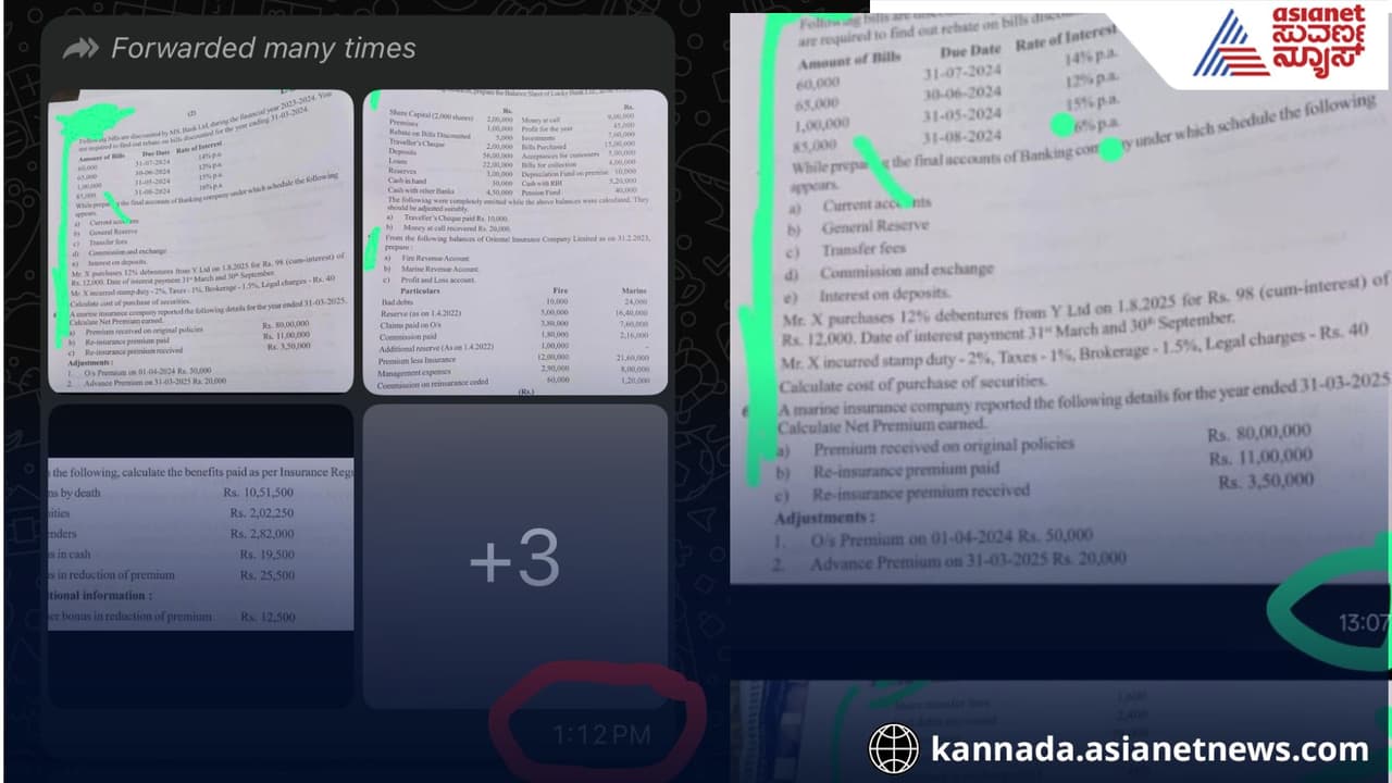 ಇಂದು ಜರುಗಿದ ಬಿಕಾಂ ಐದನೇ ಸೆಮಿಸ್ಟರ್ನ 'ಅಡ್ವಾನ್ಸ್ ಅಕೌಂಟಿಂಗ್' ಪರೀಕ್ಷೆಯ ಪ್ರಶ್ನೆಪತ್ರಿಕೆ ನಿನ್ನೆ ಸಂಜೆಯೇ ಲೀಕ್ ಆಗಿದೆ ಎಂಬ ಸ್ಫೋಟಕ ಮಾಹಿತಿ ಹೊರಬಿದ್ದಿದೆ. ನಿನ್ನೆ ಸಂಜೆಯಿಂದಲೇ ಪ್ರಶ್ನೆಪತ್ರಿಕೆಯ ಪ್ರತಿಗಳು ವಾಟ್ಸಾಪ್ ಗ್ರೂಪ್ಗಳಲ್ಲಿ ಹರಿದಾಡುತ್ತಿದ್ದು, ಇಂದು ಪರೀಕ್ಷಾ ಕೇಂದ್ರದಲ್ಲಿ ನೀಡಲಾದ ಪ್ರಶ್ನೆಪತ್ರಿಕೆಗೂ ಲೀಕ್ ಆದ ಪೇಪರ್ಗೂ ಸಂಪೂರ್ಣ ಸಾಮ್ಯತೆ ಇರುವುದು ದೃಢಪಟ್ಟಿದೆ.