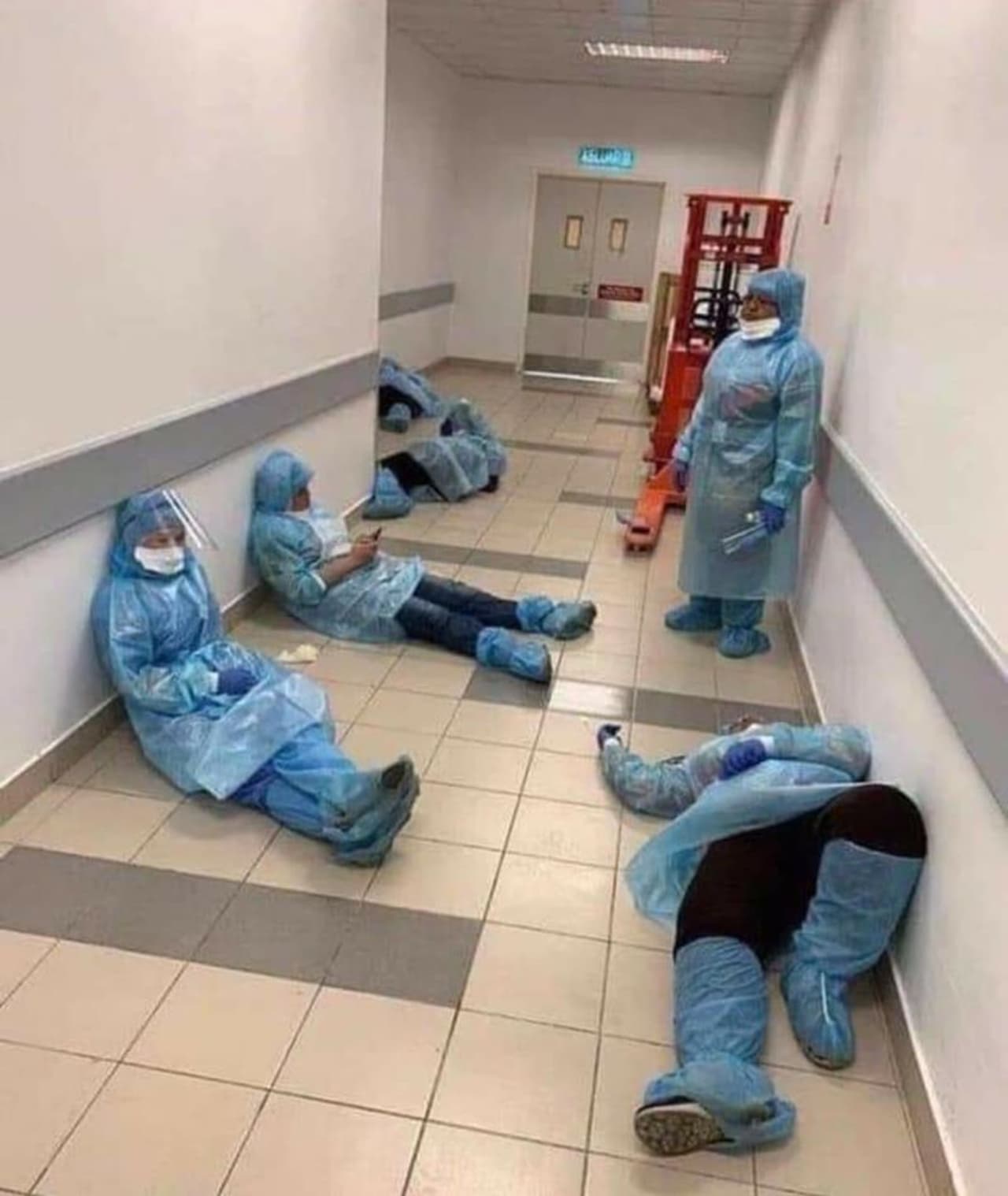 ಆದರೆ ಈ ಒಂದು ನಿರ್ಲಕ್ಷ್ಯದ ನಡೆ ಎಲ್ಲರಿಗಿಂತ ಹೆಚ್ಚು ಜನರ ಪ್ರಾಣ ಕಾಪಾಡುವಲ್ಲಿ ಶ್ರಮಿಸುತ್ತಿರುವ ಕೊರೋನಾ ವಾರಿಯರ್ಗಳ ನಿದ್ದೆಗೆಡಿಸಿದೆ. ಹೌದು ಮೊದಲನೇ ಅಲೆ ಬಂದಂತಹ ಸಂದರ್ಭದಲ್ಲಿ ದೂರದ ಬ್ರಿಟನ್, ಚೀನಾದಲ್ಲಿದ್ದ ಪರಿಸ್ಥಿತಿ ಸದ್ಯ ನಮ್ಮ ರಾಜ್ಯ ರಾಜಧಾನಿ ಬೆಂಗಳೂರಿನ ವೈದ್ಯರು ಎದುರಿಸುತ್ತಿದ್ದಾರೆ. ಸೋಶಿಯಲ್ ಮೀಡಿಯಾದಲ್ಲಿ ಸದ್ಯ ವೈರಲ್ ಆಗುತ್ತಿರುವ ವಿಕ್ಟೋರಿಯಾ ಆಸ್ಪತ್ರೆಯ ವೈದ್ಯರ ದುಸ್ಥಿತಿಯ ಈ ಚಿತ್ರವೇ ಇದಕ್ಕೆ ಸಾಕ್ಷಿ. ನೋಡಲು ಇದು ಕೇವಲ ಒಂದು ಚಿತ್ರವಾಗಿದ್ದರೂ, ಬಿಚ್ಚಿಡುತ್ತಿರುವ ನೋವು, ಪರಿಸ್ಥಿತಿ, ವಾಸ್ತವತೆ ವಿಚಾರ ಹಲವು.